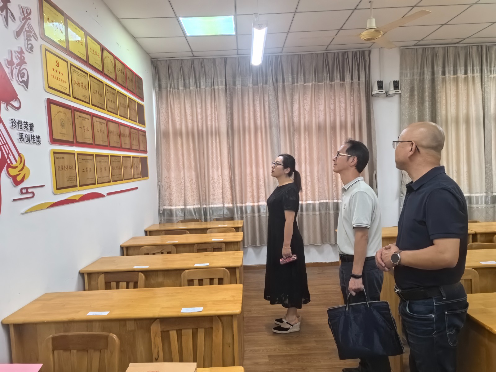 付院长和张主任在陆埠成校杨文斌校长的引领下,先后参观了老年教室、书法教室、舞蹈教室、育婴、数控实训教室等场所,实地了解陆埠成校,一边参观杨校长一边介绍学校的办学特色及培训成果等,两位领导对陆埠成校长期在成人教育、社区教育、职业技能培训等方面所开展的工作以及取得的成绩给予了充分肯定虽然学校场地不大,但学校管理规范,校园文化好;学校培训类目多,办学理念能够扎实落地;学校组织构架、工作机制完善,工作思路清晰