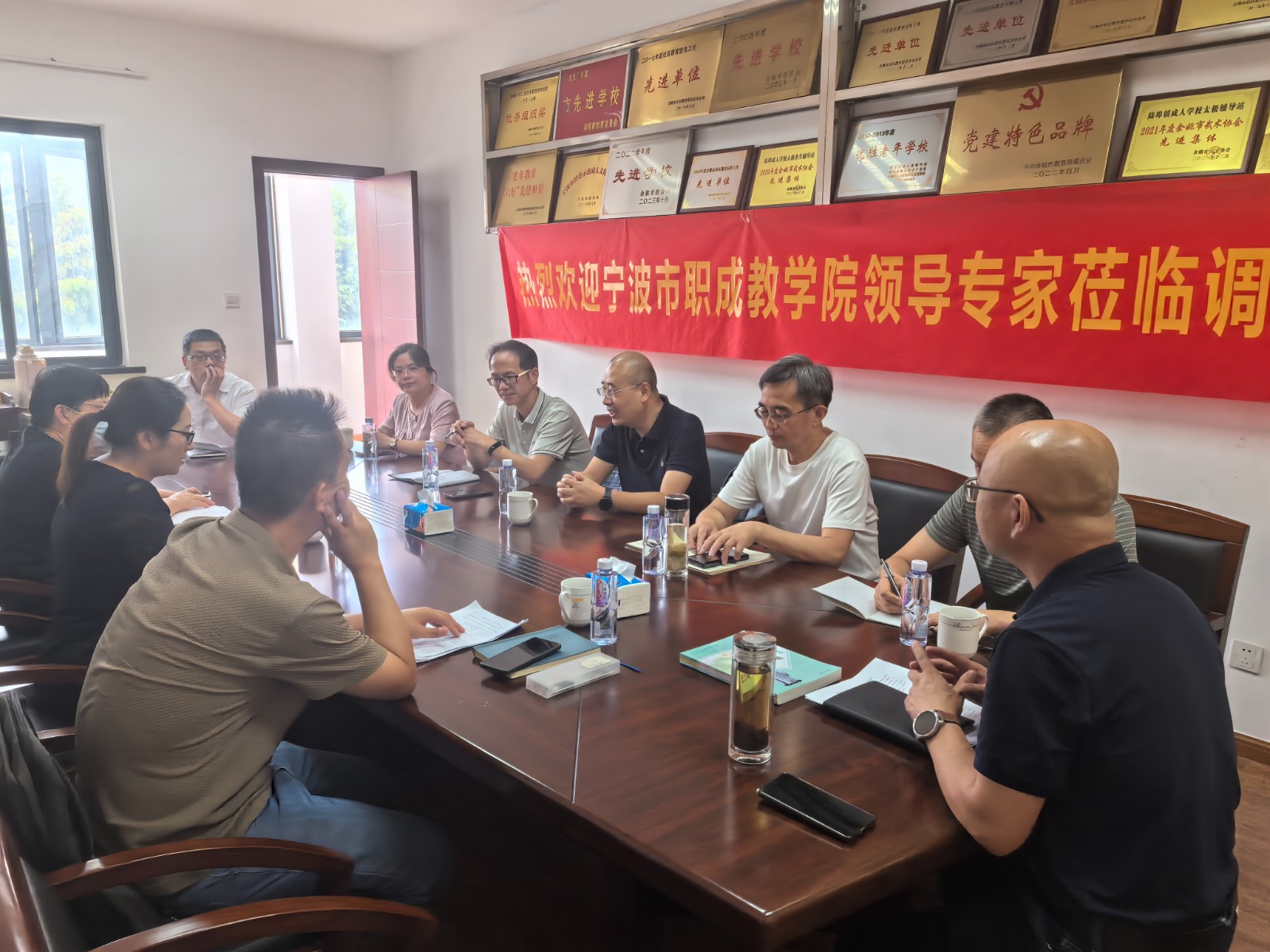 近日,宁波市职业与成人教育学院付娴副院长与张意君主任莅临余姚市陆埠镇成人中等文化技术学校,对学校工作进行实地调研指导,余姚教育局徐光辉科长等陪同调研。