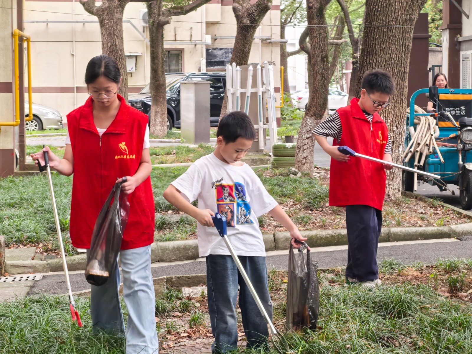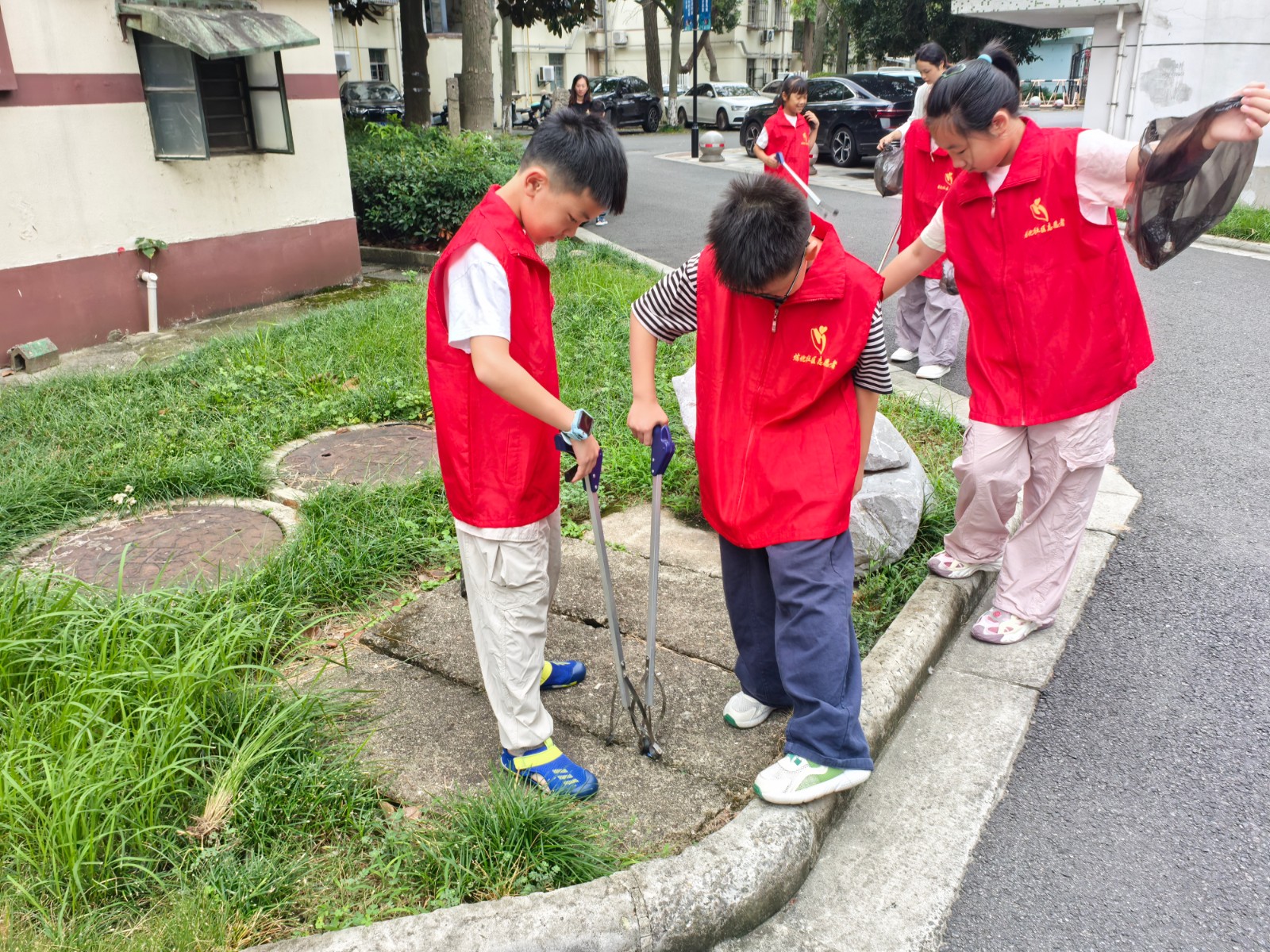经过一个多小时的努力,小区的绿化带和道路变得更加干净整洁,积水隐患得到有效消除。孩子们的笑脸和认真模样,也成了社区里最动人的风景。