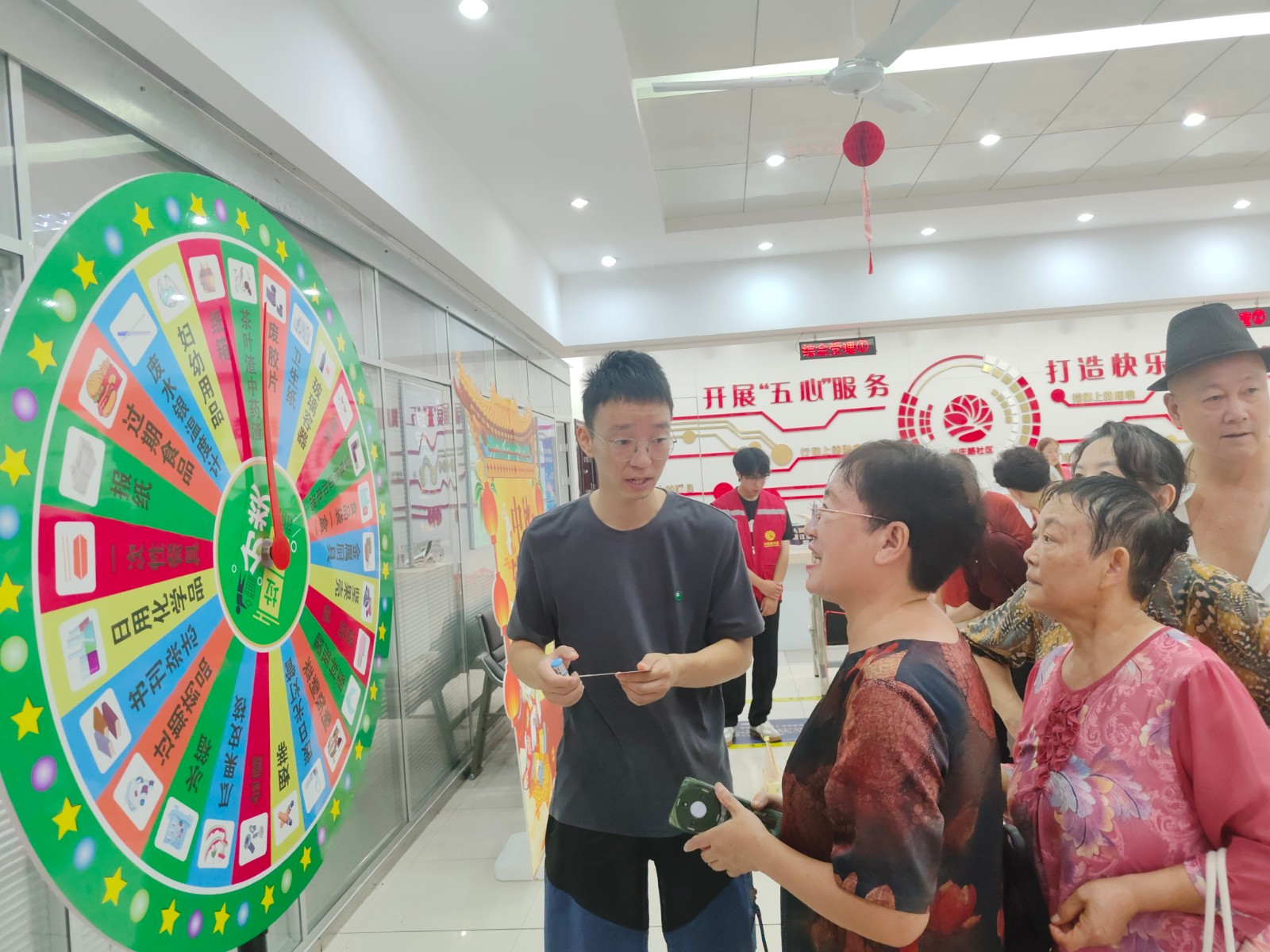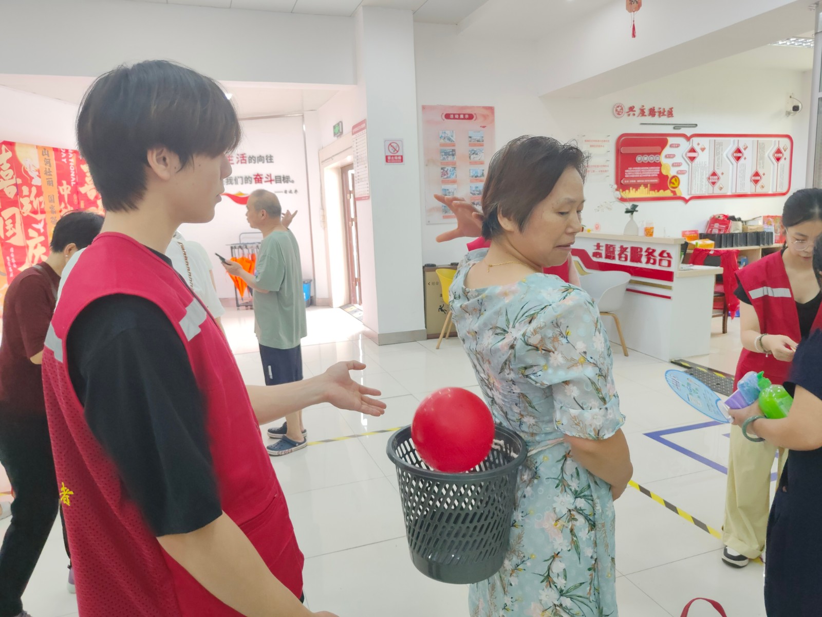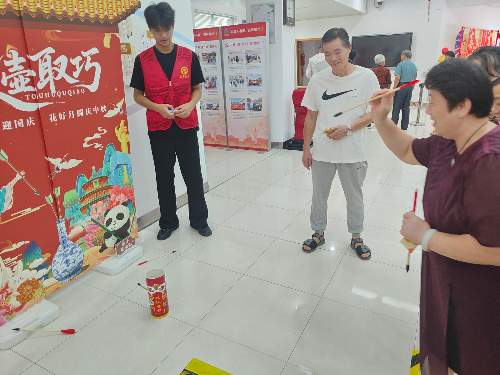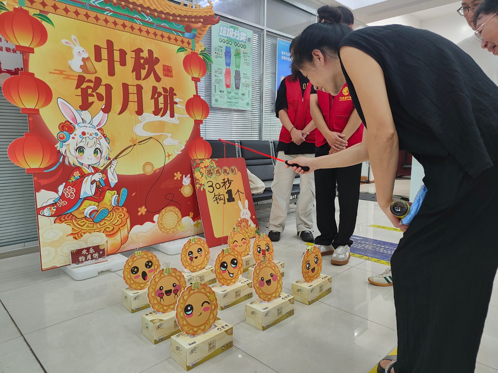 中秋浓情暖,国庆红旗烈,中秋逢国庆,家国共团圆。为迎接双节的到来,弘扬中华优秀传统文化,丰富居民精神文化生活,营造欢乐祥和的节日氛围,9月24日上午,兴庄路社区组织开展“喜迎国庆 情满中秋”双节游园会活动,设置了“欢乐钓月饼”、“妙手投壶礼”、“篓筐接气球”、“趣味套圈圈”、“分类大转盘”五项创意打卡活动,吸引了众多居民热情参与。