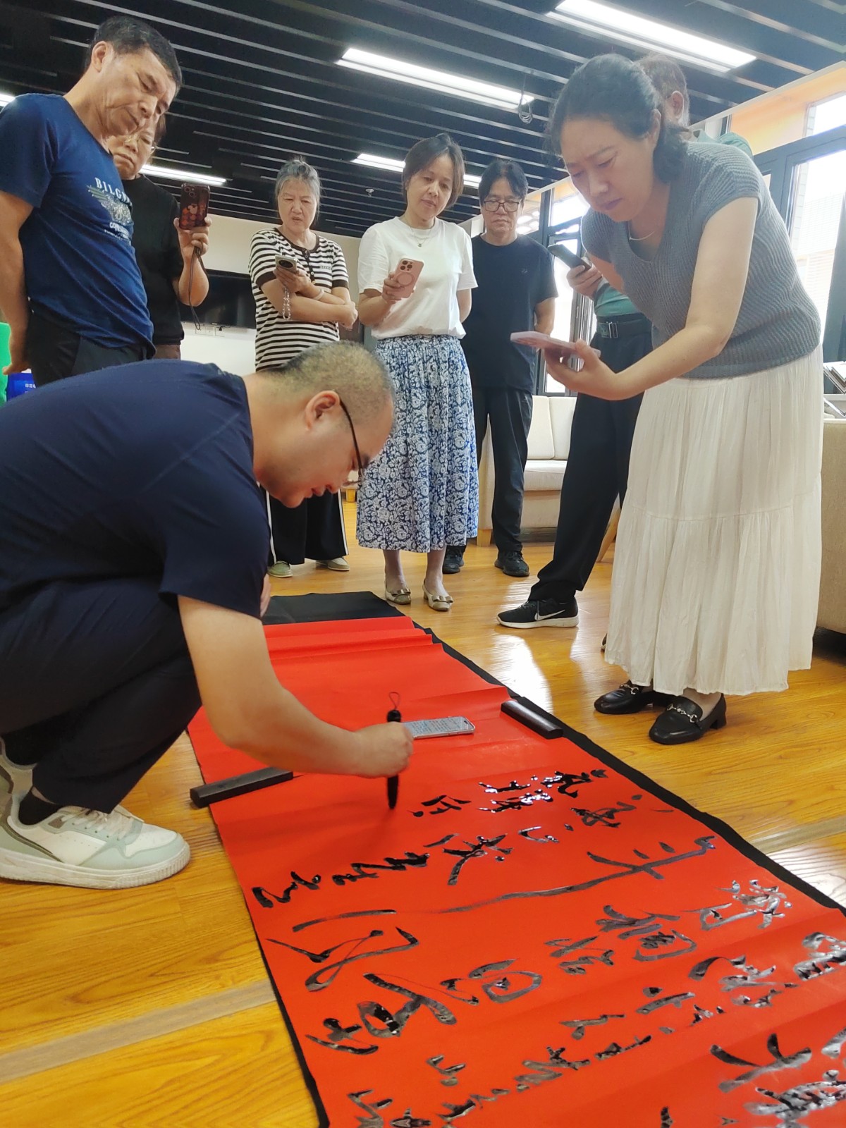 教学过程中,马老师特别强调了行书的“气韵生动”,指导学员如何通过笔画的连贯与节奏感,表达对祖国蓬勃发展的真挚祝福。现场学习氛围浓厚,学员们纷纷表示,这种以国庆为主题的书法课程既有艺术性又富有教育意义,在提升书法技艺的同时,更深化了家国情怀。