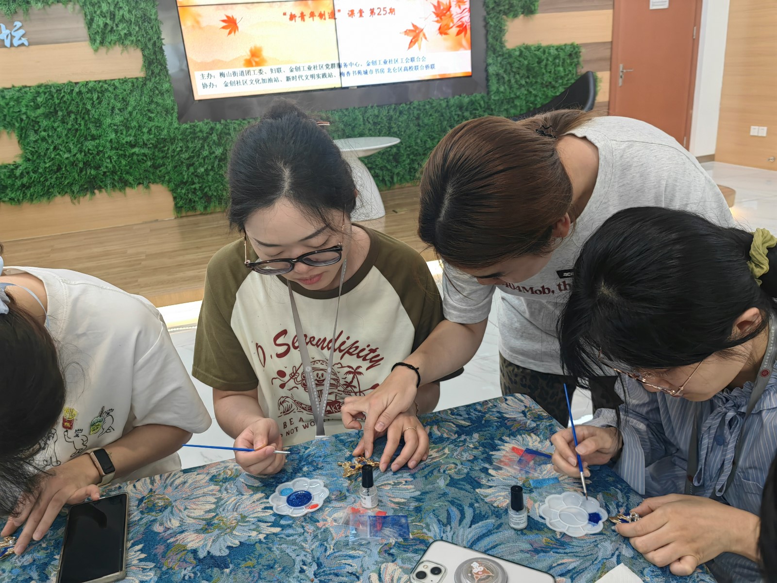 烧蓝工艺始于明清时期,作为河北省省级非物质文化遗产的它,承载着中国传统金属工艺的智慧与美学。9月25日午间,梅山成校教学点金创工业社区“新青年制造”课堂推出非遗烧蓝手作活动,来自北航宁波创新研究院、北京大学宁波海洋药物研究院、宁波数智跨境物流有限公司等企事业单位30余名青年职工参与活动。
