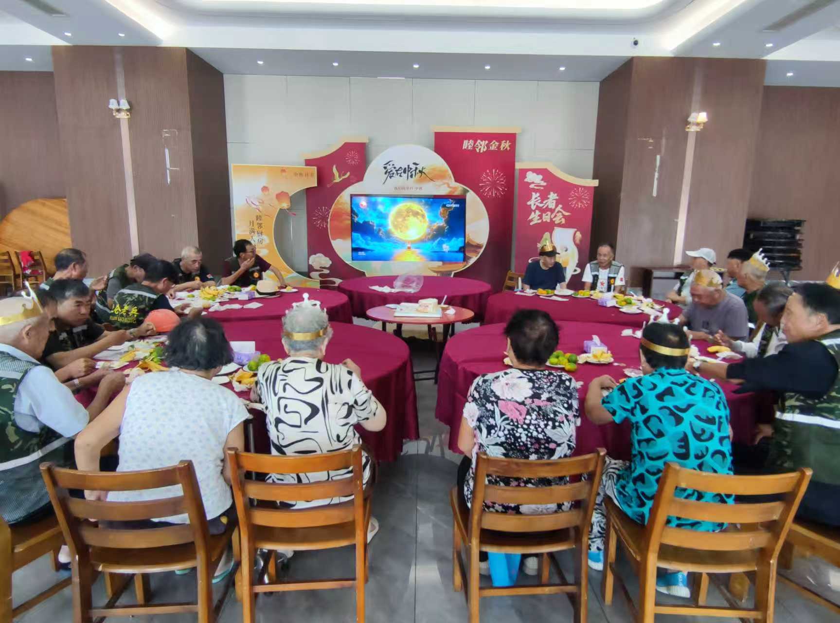 秋高气爽,丹桂飘香。在2025年中秋佳节即将来临之际,为弘扬中华民族尊老、敬老、爱老的优良传统,9月25日下午,梅山成校联合江梅社区在文化活动中心举办了一场以“月圆福寿,睦邻金秋”为主题的长者集体生日会。活动特别邀请了网格内当季度过生日的80周岁以上长者参与,而活动最亮丽的风景线,是一群退役老兵志愿者,他们以热情的服务和无私的奉献,将温暖与关怀传递给了在场的每一位寿星。