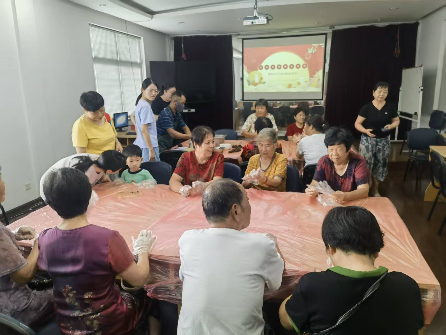 金黄的蛋黄酥,层层酥皮象征邻里之间层层叠叠的关爱,甜蜜的馅料包裹着社区浓浓的温情,成为这个双节最独特的风景。