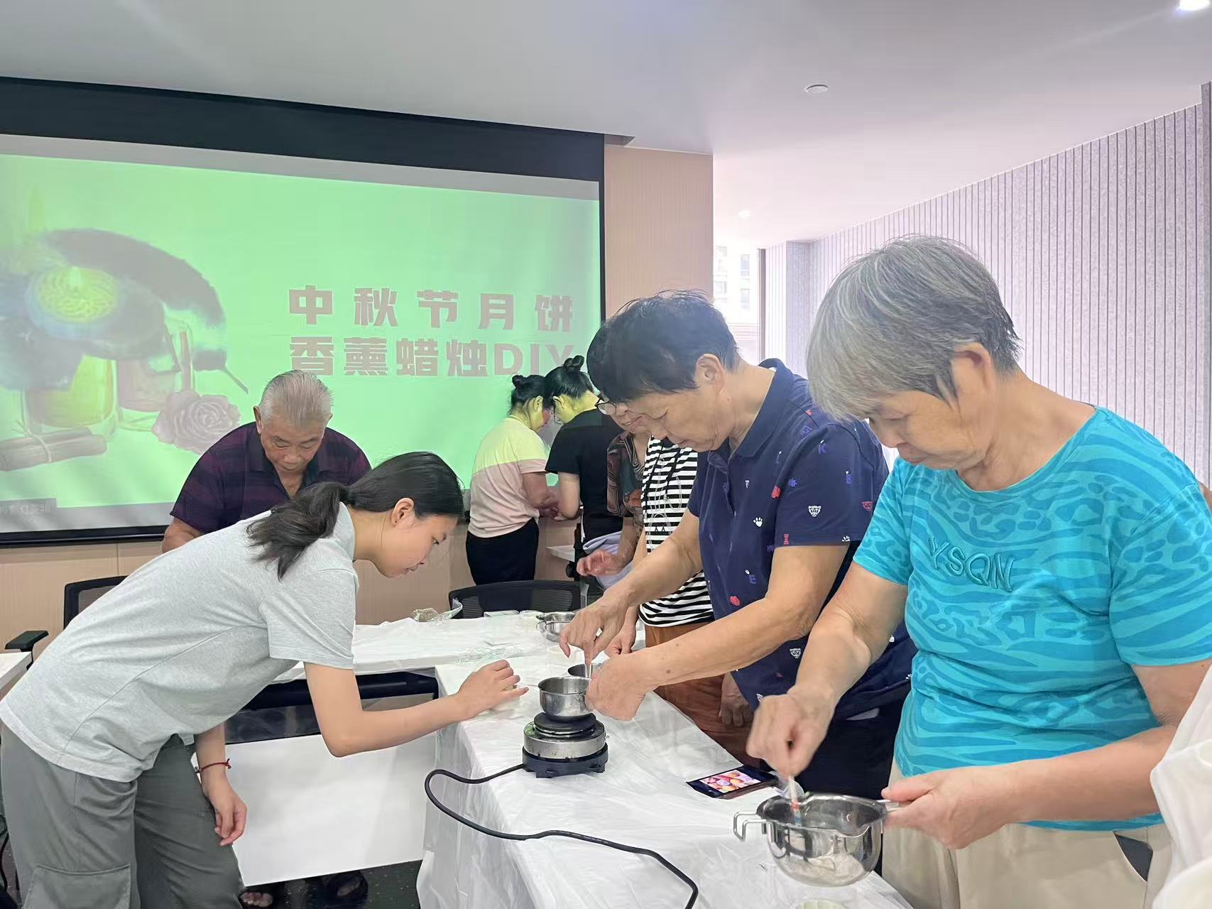 为弘扬中华民族传统文化,丰富居民精神文化生活,增进邻里之情,营造喜庆祥和的节日氛围,在中秋佳节即将来临之前,双桥社区开展了“月满中秋,‘香’聚邻里”  中秋创意香薰蜡烛手作活动。老师为大家普及了精油的基础知识,解释了不同精油如薰衣草的安神、甜橙的愉悦等功效,引导居民根据喜好选择心仪的精油,调配专属的中秋味道。在老师耐心指导和示范下,居民跃跃欲试,纷纷化身“手作达人”。大家小心翼翼地加热、融化大豆蜡,待蜡液冷却到适宜温度后,滴入精心挑选的精油,轻轻搅拌,再将混合好的蜡液倒入可爱的月饼模具中。活动现场香气四溢,欢声笑语不断,邻里之间互相交流配色心得、分享闻香感受,气氛温馨而融洽。经过一段时间的耐心等待,一个个造型逼真、色彩柔和、散发着迷人香气的“月饼”香薰蜡烛陆续脱模而成。居民们捧着自己独一无二的作品,脸上都洋溢着满足和自豪的笑容。活动不仅增进了社区居民的情感交流,更以创意方式营造了浓厚的中秋团圆气息,让佳节温情在欢声笑语中传递。