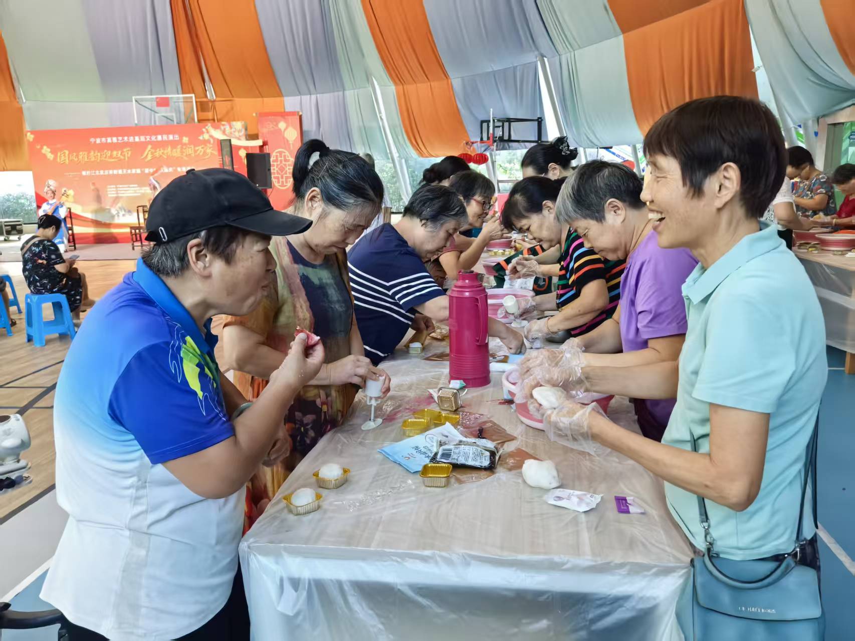 活动现场堪称“传统与浪漫的碰撞现场”,各个区域都洋溢着欢乐与温馨。甬剧演员一亮嗓,婉转的唱腔便将人们带入地方戏曲的独特韵味中,老人们听得如痴如醉,小朋友也跟着节奏晃起了脑袋;手作月饼区里,居民们围桌而立,揉面、包馅、压模,指尖的温度与月饼的香甜交织,品味着中秋独有的烟火气;投壶区前排起了长队,大人小孩摩拳擦掌,投中时的欢呼与未中时的笑声此起彼伏,复刻着古人的雅趣时光;而最浪漫温情的,当属“月亮上写诗”专区,居民们将“愿邻里常安”“中秋快乐”“全家幸福”等对团圆的期许、对邻里的祝福,一笔一划写在“月光祝福墙”上,让温暖情谊在社区间传递。