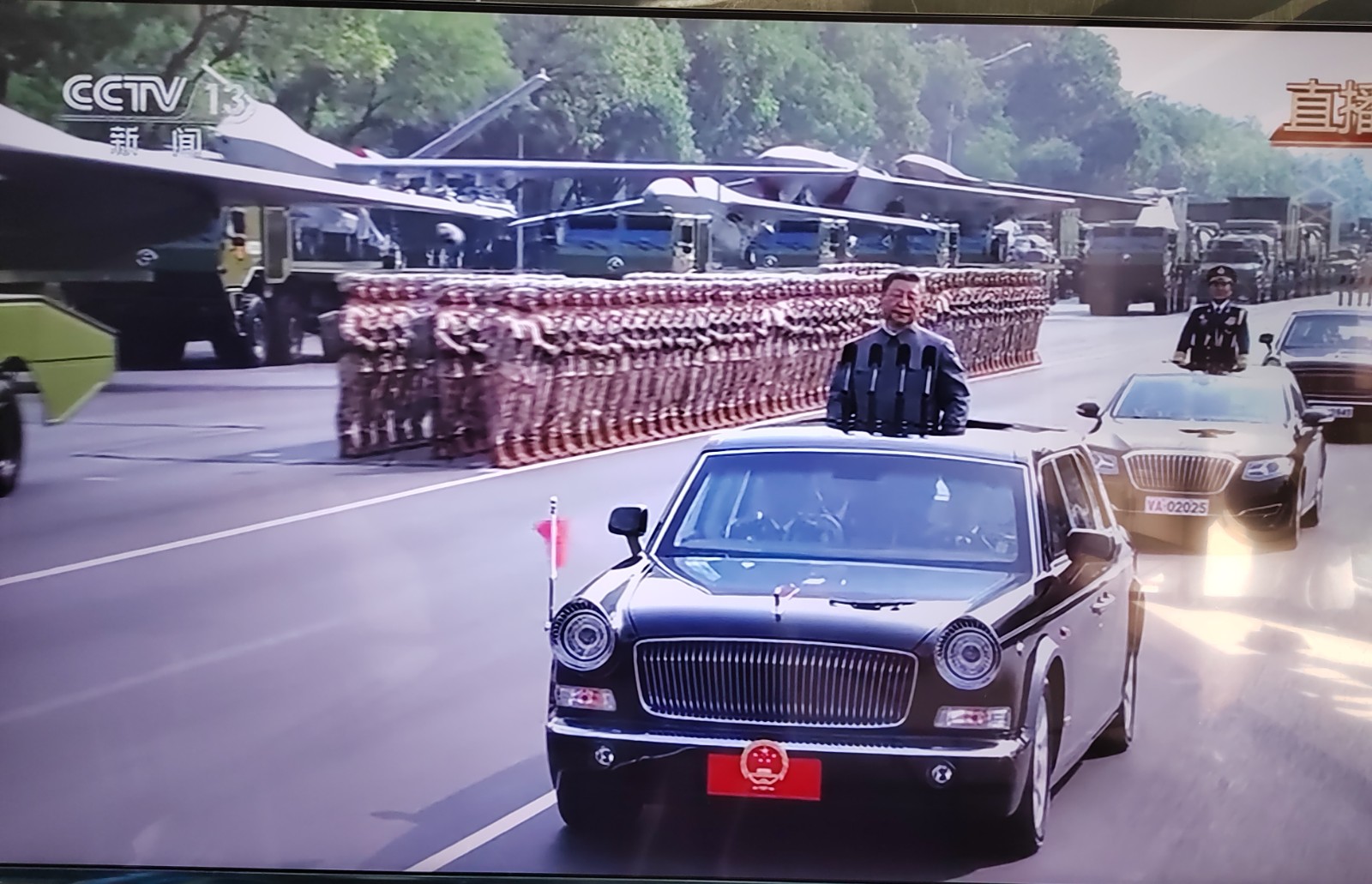紧接着,习主席阅兵开始,各种兵种的方队依次通过,他们手持钢枪,目光如炬,精神抖擞,他们的身影如同一道坚固的防线守护祖国的安宁与繁荣。随后,各种现代化武器装备一一亮相,它们是祖国科技进步的体现,也是国防力量的象征。没有共产党,就没有新中国。在中国共产党的正确领导下,我们的祖国一步步走向繁荣我为自己是中国人而感到自豪。