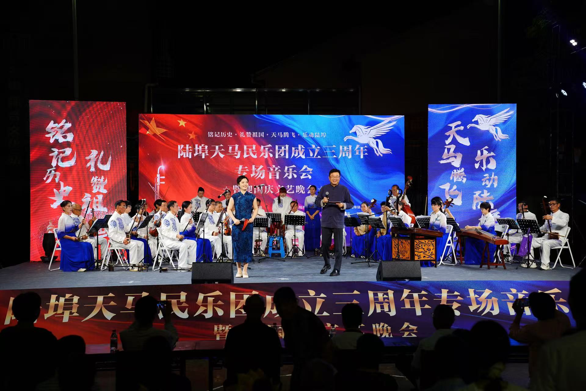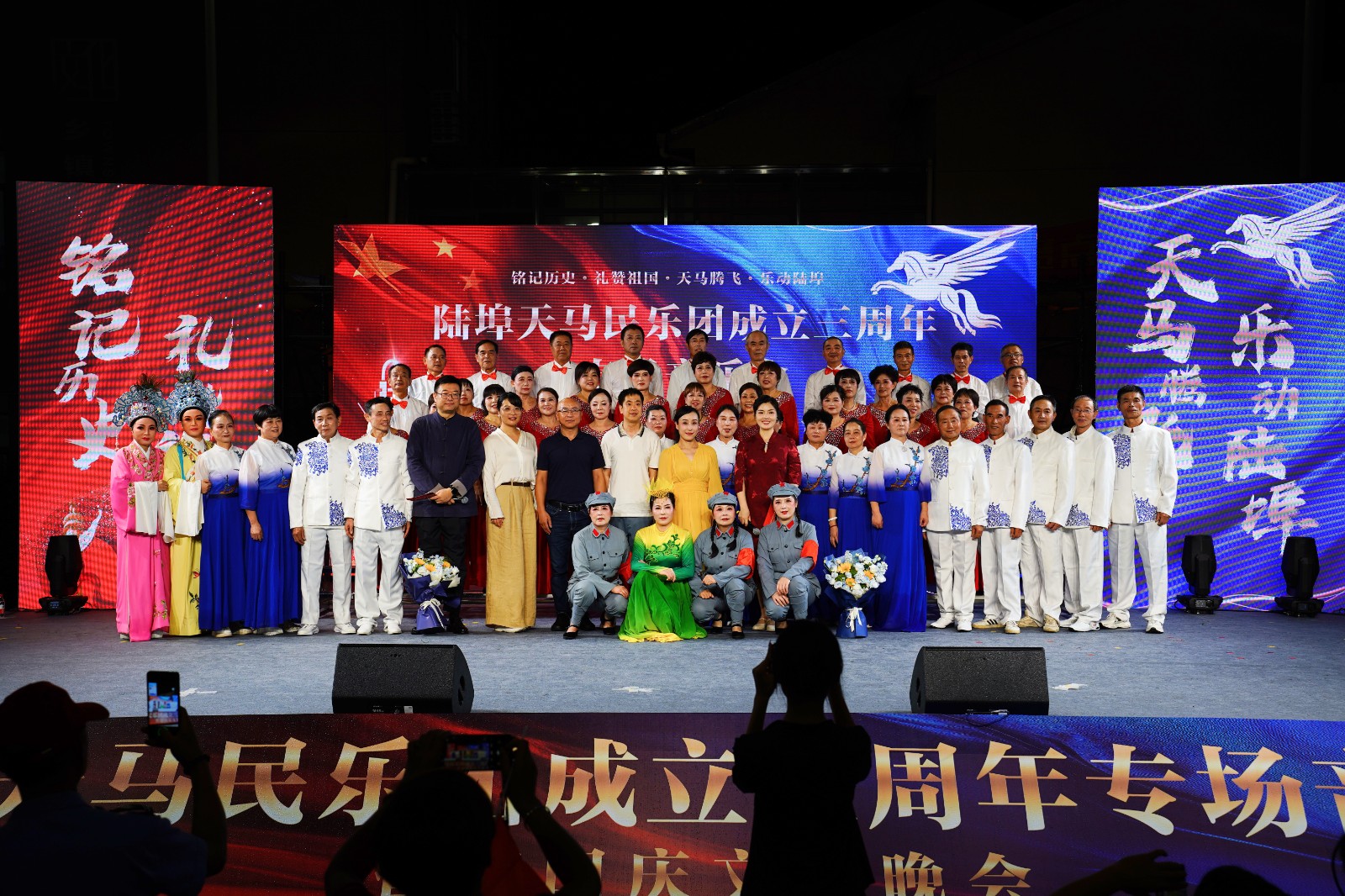 2025年是中国人民抗日战争暨世界反法西斯战争胜利80周年,也是陆埠天马民乐团成立3周年。在这具有特殊历史意义的时刻,为弘扬民族精神、传承红色文化,展示陆埠镇群众文化成果,一场以“铭记历史,礼赞祖国,天马腾飞,乐动陆埠”为主题的盛大演出,于28日晚上,在陆埠成校灯光球场隆重举行,吸引了周边数百名群众前来观赏。本次活动由陆埠镇文化站与陆埠镇成人学校联合举办。