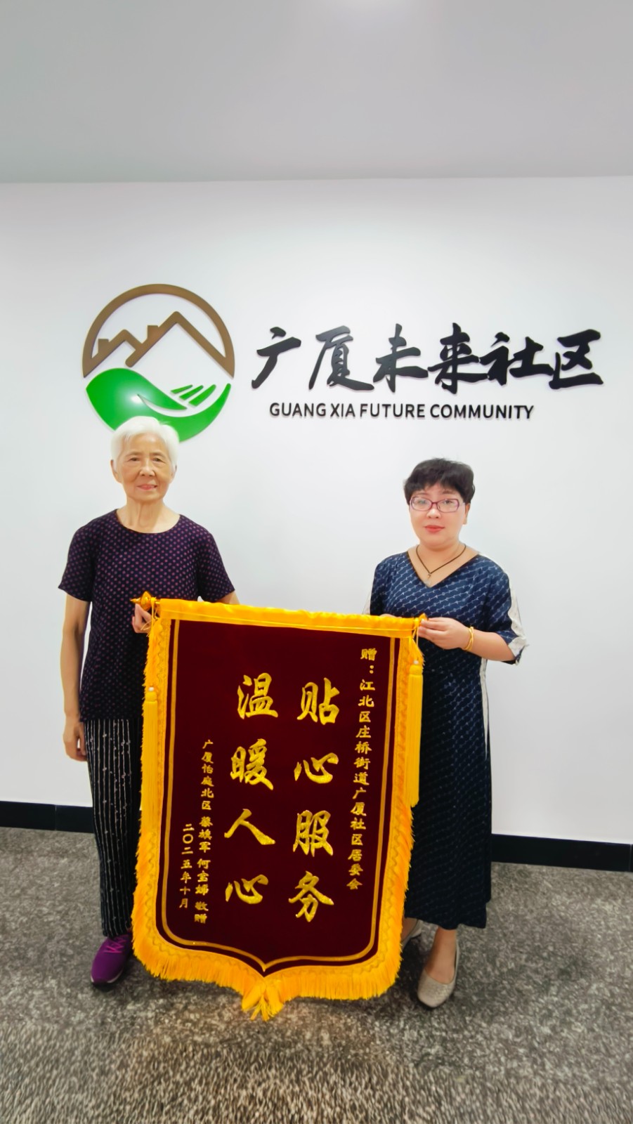 当这些现代化的家电被送进家门并安装调试到位时,这个曾经略显沉寂的家瞬间亮堂了起来,充满了现代化的生活气息。面对焕然一新的家,受助家庭监护人何阿姨激动地表示:“真是没想到,社区为我们想得这么周到。这些新家电不仅好用、安全,更暖了我们的心。感谢社区,感谢政府的好政策,让我们对未来的生活更有信心了。”为了表达内心的感激之情,何阿姨特地送上一面锦旗感谢社区的主动关怀和个性化支持。