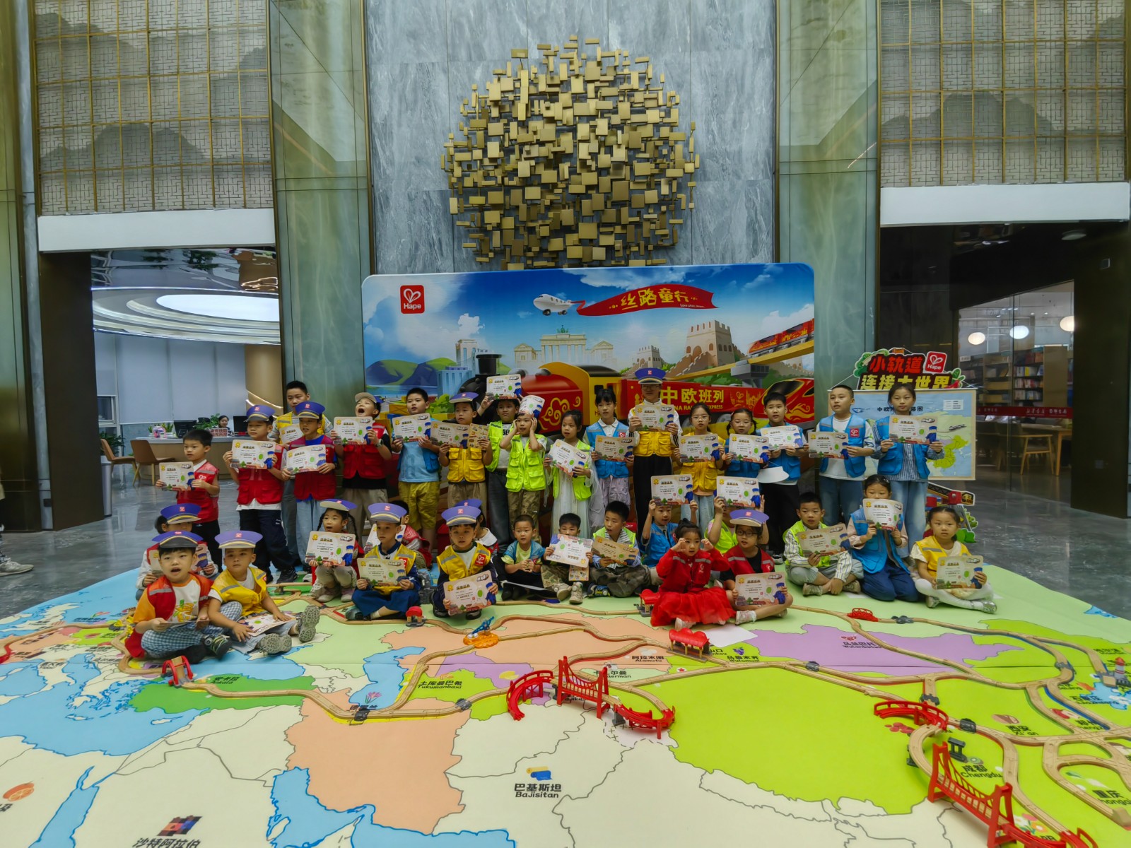 轨道建成,“列车”即刻启程。孩子们用小货车装载着代表中国文化的“丝绸”、“茶叶”、“瓷器”,以及代表沿线国家特色的“珠宝”、“香料”、“工艺品”,沿着轨道有序运输。小朋友们在实践中理解了物流运输与文化交流的深远意义。工作人员为这些小朋友们颁发了特制的“小小丝路列车长”荣誉证书。手捧证书的“小列车长”们脸上洋溢着自豪的笑容