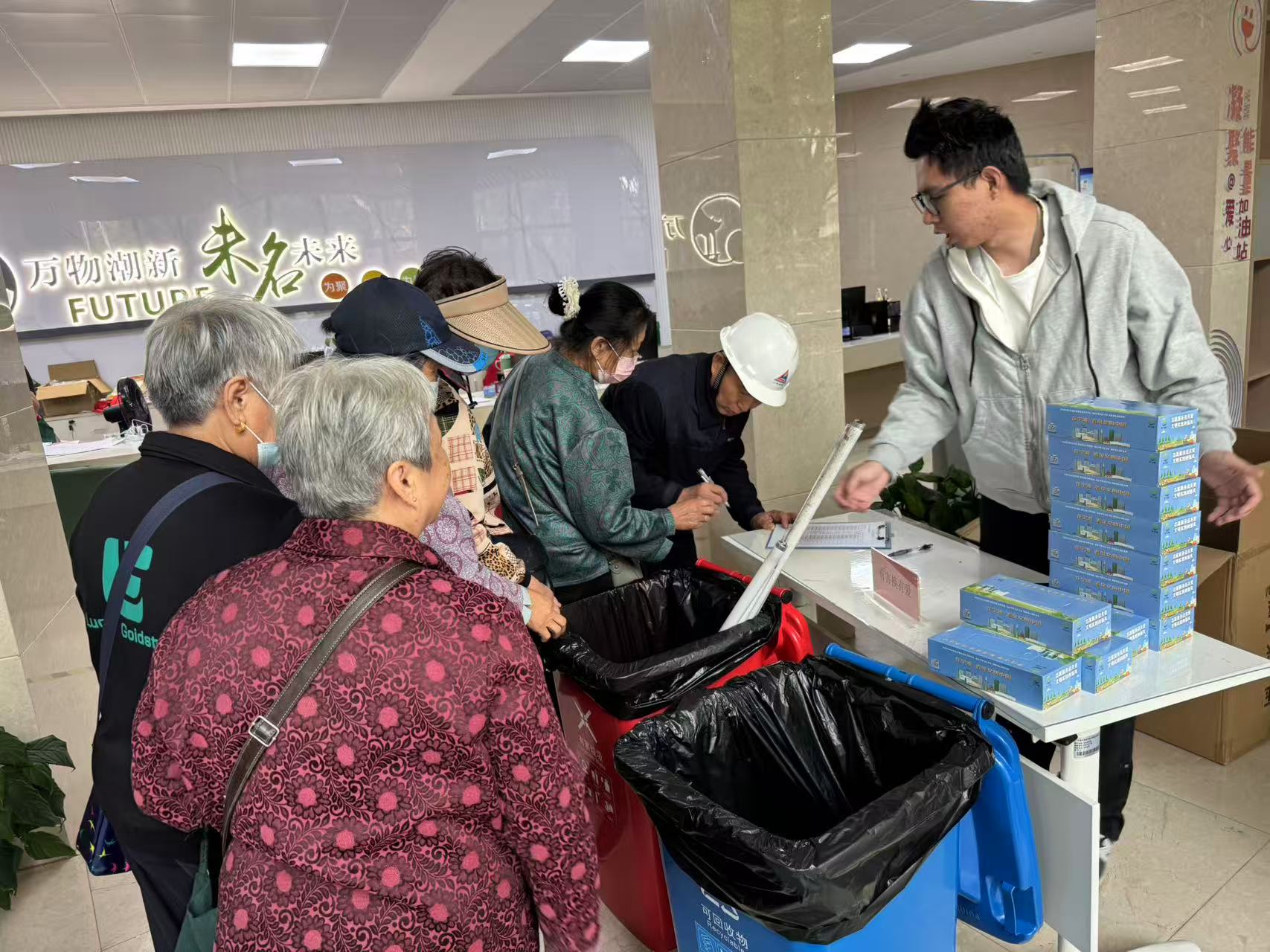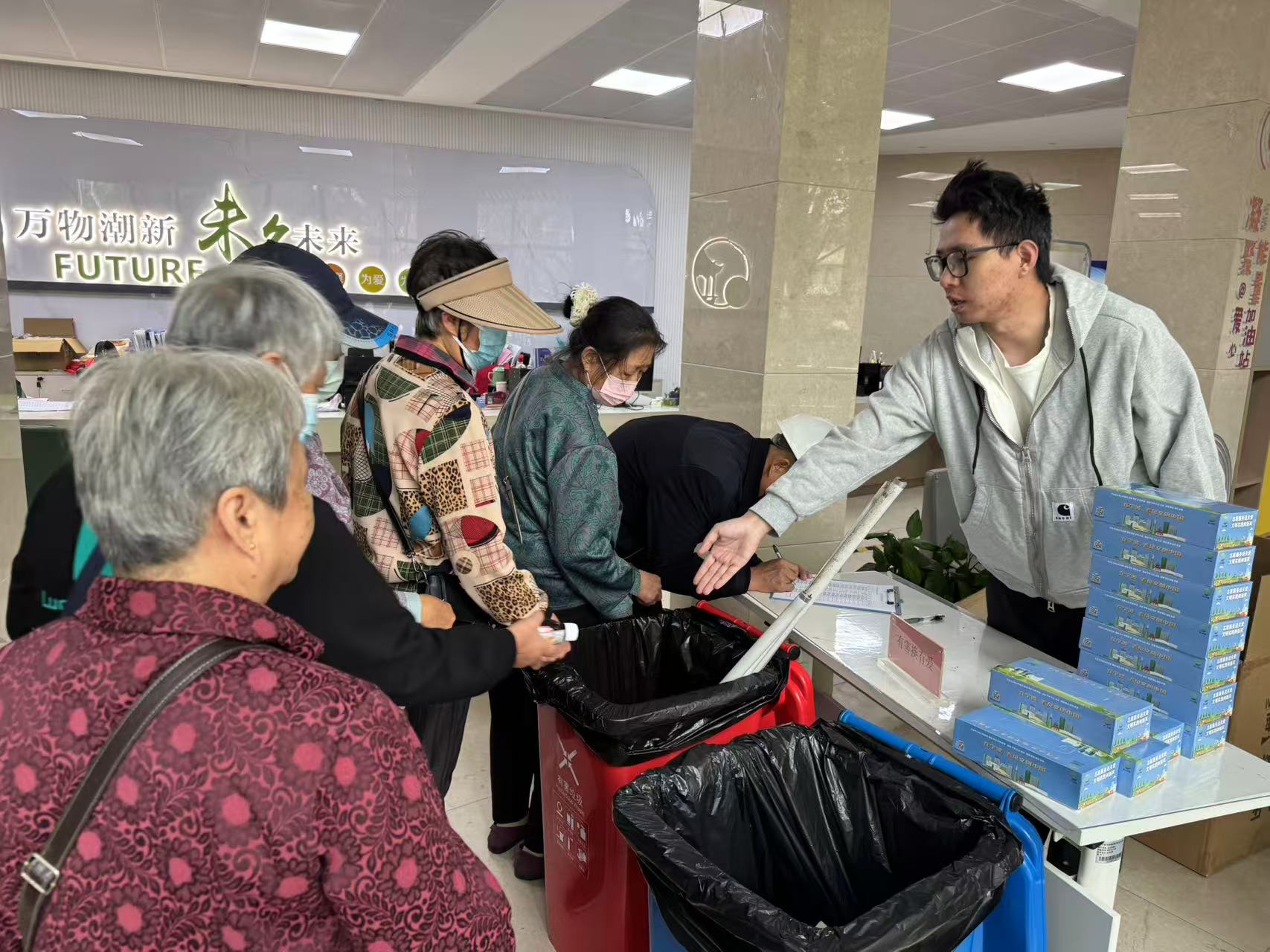 秋高气爽,阳光和煦。10月21日上午,未名社区党群服务中心再次迎来备受居民欢迎的“有害换有爱”垃圾分类主题活动。居民们参与热情高涨,纷纷拎着家中的有害垃圾前来兑换,以实际行动践行绿色低碳新时尚。