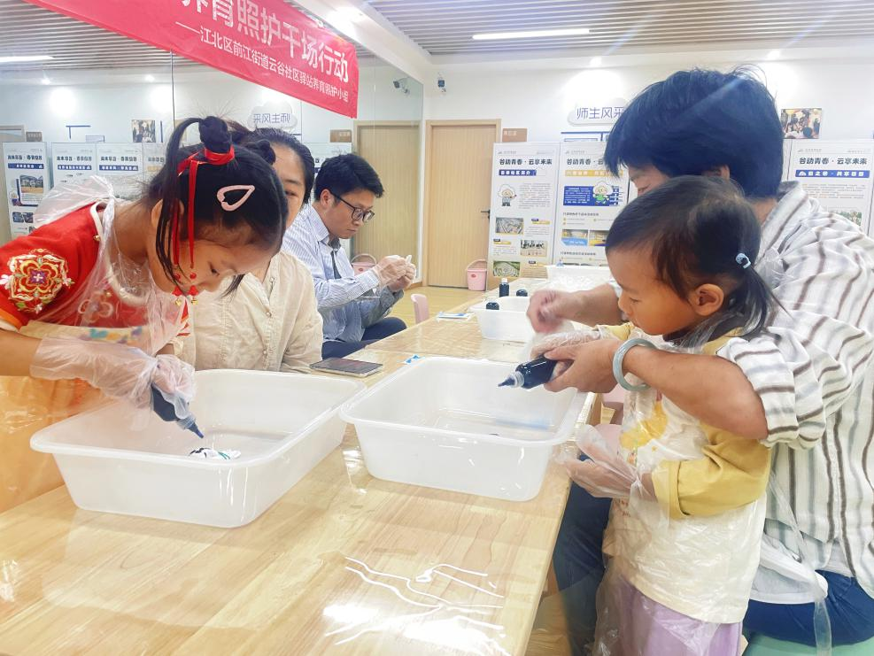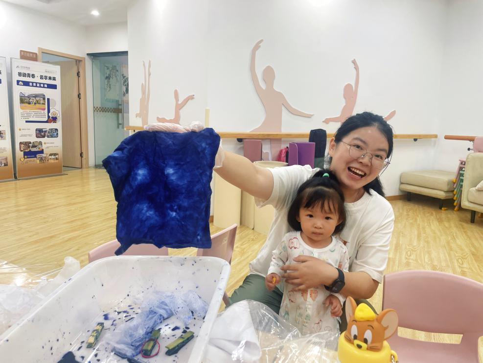 活动尾声,老师引导孩子们分享感受:“我的布像蓝色的海浪!”“我和妈妈一起做的,超级开心!”家长们也表示,这样的活动不仅锻炼了孩子的动手能力,更让他们在亲子互动中感受到非遗文化的魅力,是一次“有温度的文化启蒙”。