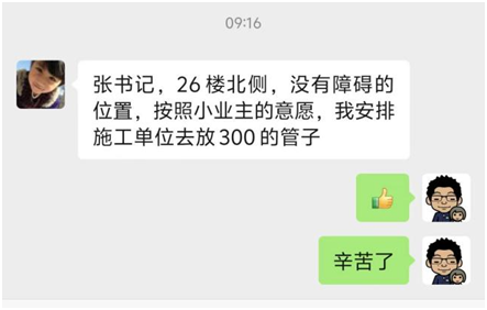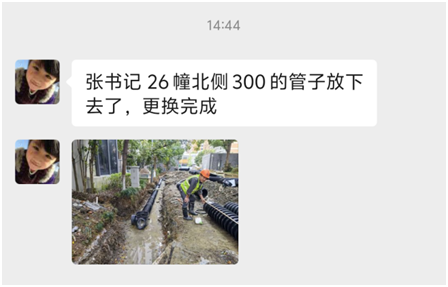 天合社区三网格员毛敏宏休假中听到居民群消息提示音频繁且急促地连续响起,经验告诉她,小区里一定发生了什么事引得居民热议。果然,天合家园26幢的业主对小区雨污分流工程使用的管道口径提出了疑问,担心会影响日后排水。转达了施工单位意见后,业主们并不认可,你一言我一语,群里又热闹起来。