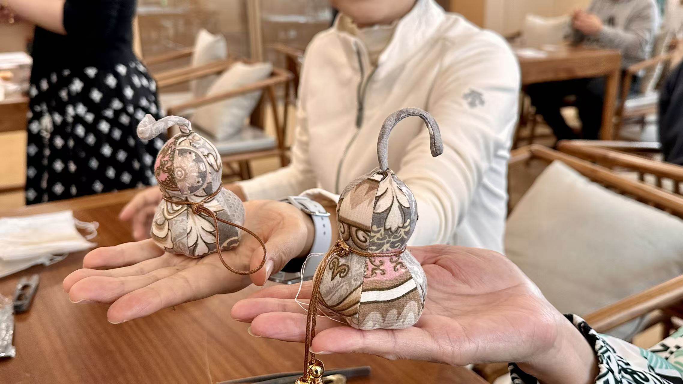 活动现场,专业老师先讲解布艺美学基础,后从布料选择、色彩搭配到针法技巧,手把手指导居民制作简约葫芦布艺挂件,居民们热情高涨,互相交流技巧,原本普通的布料与葫芦,在巧手下变成了精致的挂饰、寓意吉祥的艺术品。
