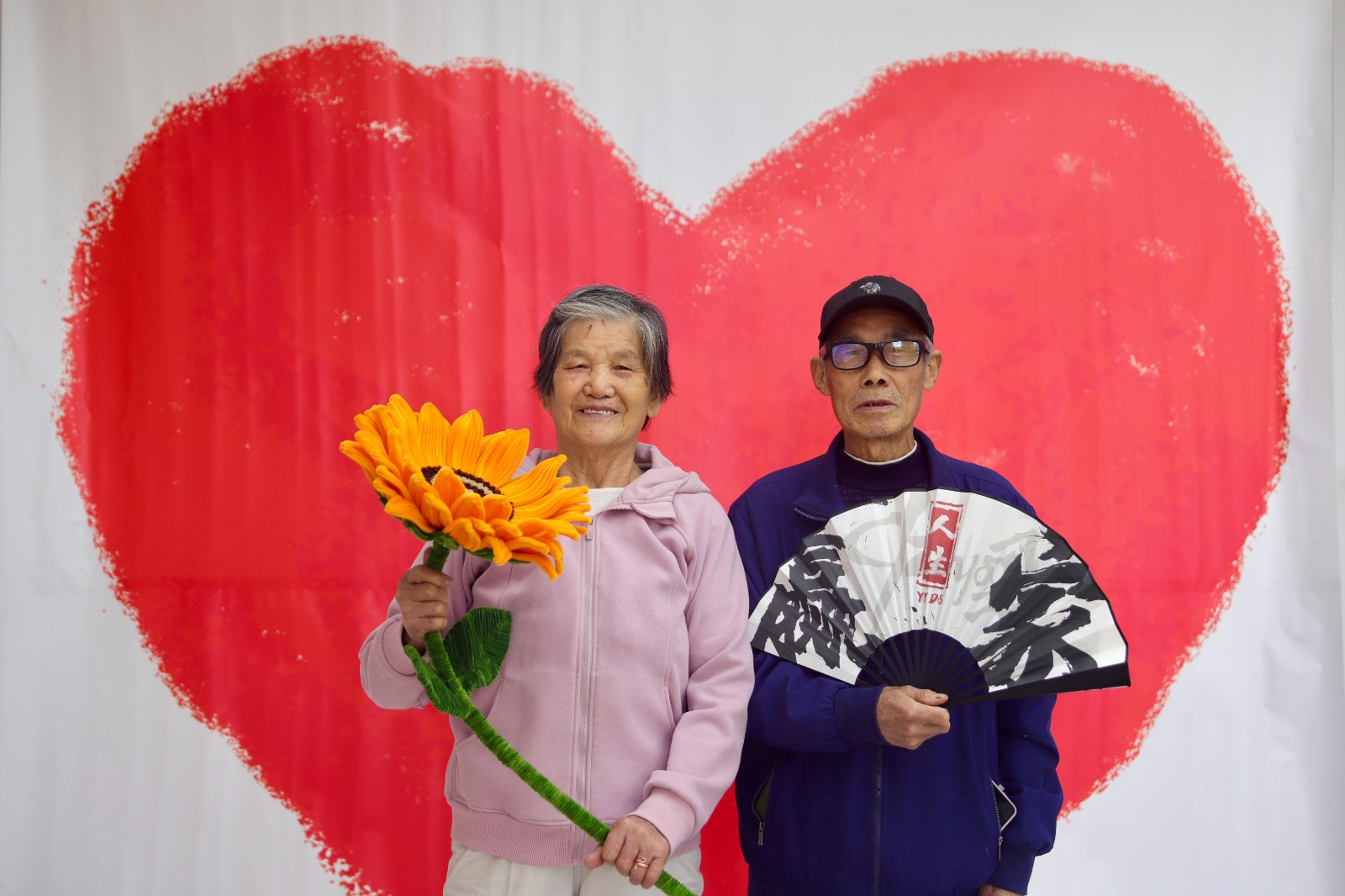 “咔嚓咔嚓,再来一张!”在社区影像社主理人虞增的相机里,一张张老友时尚大片新鲜出炉。这里是最让老人们流连忘返的拍照打卡区,糖葫芦、向日葵、数字气球、扇子等各式道具摆满桌面,老人们像孩子般挑选着自己心仪的道具,在镜头前展露笑颜。
