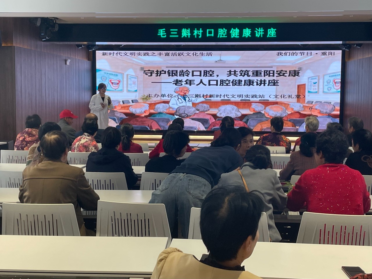 各村开展了“守护银龄口腔 共筑重阳安康”口腔健康讲座、 “诗暖金秋 爱满重阳”诗歌朗诵活动、 “老年人居家安全与急救知识”活动、 “指尖载秋意 剪纸话重阳”活动、 “草本绘秋 重阳传情”活动,老年人反诈宣传教育活动、 “我们的节日·重阳”主题文艺活动, “重阳忆岁月 健康永相伴”健康养生讲座等丰富的老年活动,