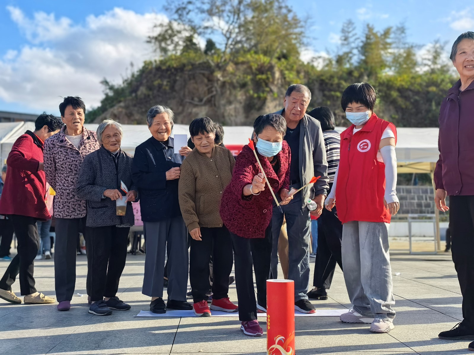 活动现场,百余名老年居民在趣味互动与便民服务中共度重阳。当天,趣味运动区人气颇高。“长寿滚滚乐”比赛中,老人们专注推动易拉罐沿直线滚动,精准停入积分区的选手赢得阵阵掌声;“投壶大比拼”再现传统雅趣,李大爷凭借稳健手法连中三元,他表示这项活动既锻炼眼力又考验手感;“金秋圈圈乐”摊位前,72岁的王阿婆轻扬手腕,塑料圈稳稳套中目标,引来邻里齐声喝彩……