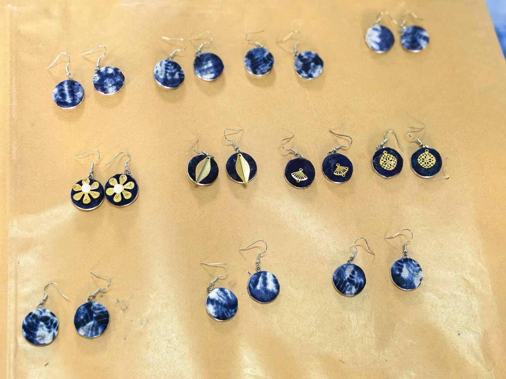 最后 15 分钟,社团成员帮大家修整毛边、组装耳钩,参与者分享设计思路。活动诞生了兼具扎染灵动感与宋锦厚重感的耳环,见证传统与现代交融,展现千年织锦美学与扎染艺术魅力。
