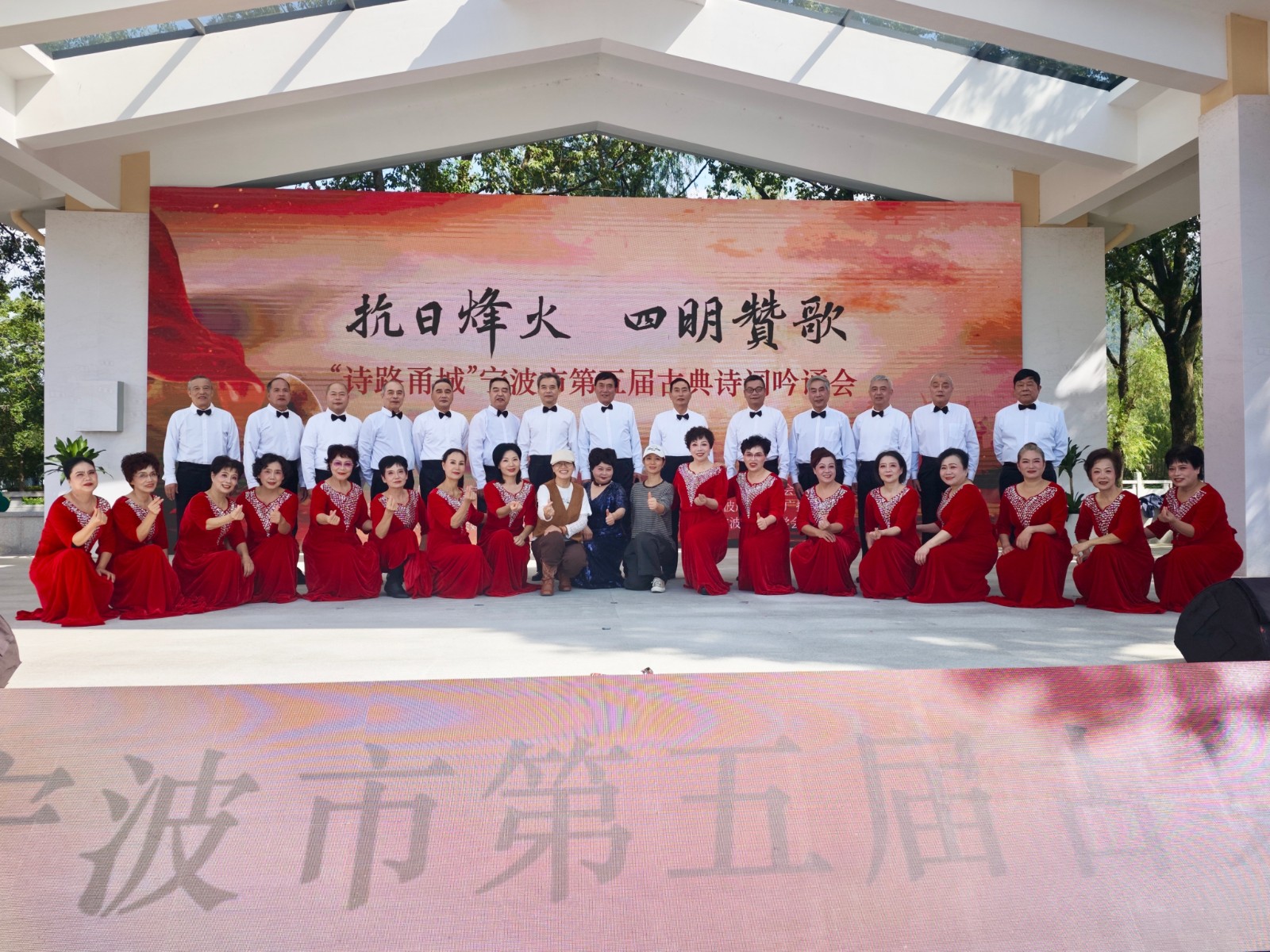 10月29日清晨6点,宁波开大余姚学院“舜之声”合唱班演出群里,班主任罗老师的一条温馨提醒准时弹出:“天气很好,心情也很好。大家再检查一下物品,演出服装尤其是男士领结、腰带别落下,还有水杯、手机、充电宝等个人物品。”此刻,群内学员们正满怀期待,准备奔赴梁弄横坎头,参与由宁波市政协、余姚市政协主办,浙江省诗词与楹联学会指导,宁波诗社、余姚市政协教科卫体文化文史和学习委员会、宁波广电集团广播新闻中心承办的“抗日烽火  四明赞歌——‘诗路甬城’宁波市第五届古典诗词吟诵会”,用精心排练的大合唱《弹起我心爱的土琵琶》,致敬红色历史。
