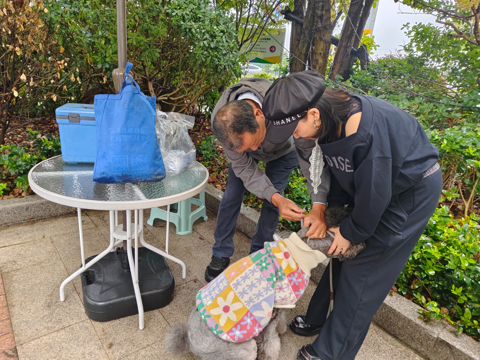 没有严肃的会议室,没有枯燥的说教,微风和细雨成了最好的“助教”。大碶街道动物防疫站的兽医在临时搭建的接种台前,一边熟练地为狗狗接种疫苗,一边向主人叮嘱注意事项。“平时带‘嘟嘟’去宠物医院打针,它总是很紧张,今天在熟悉的环境里,它乖多了!”居民樊阿姨看着自家顺利打完疫苗的“毛孩子”,脸上满是欣慰。