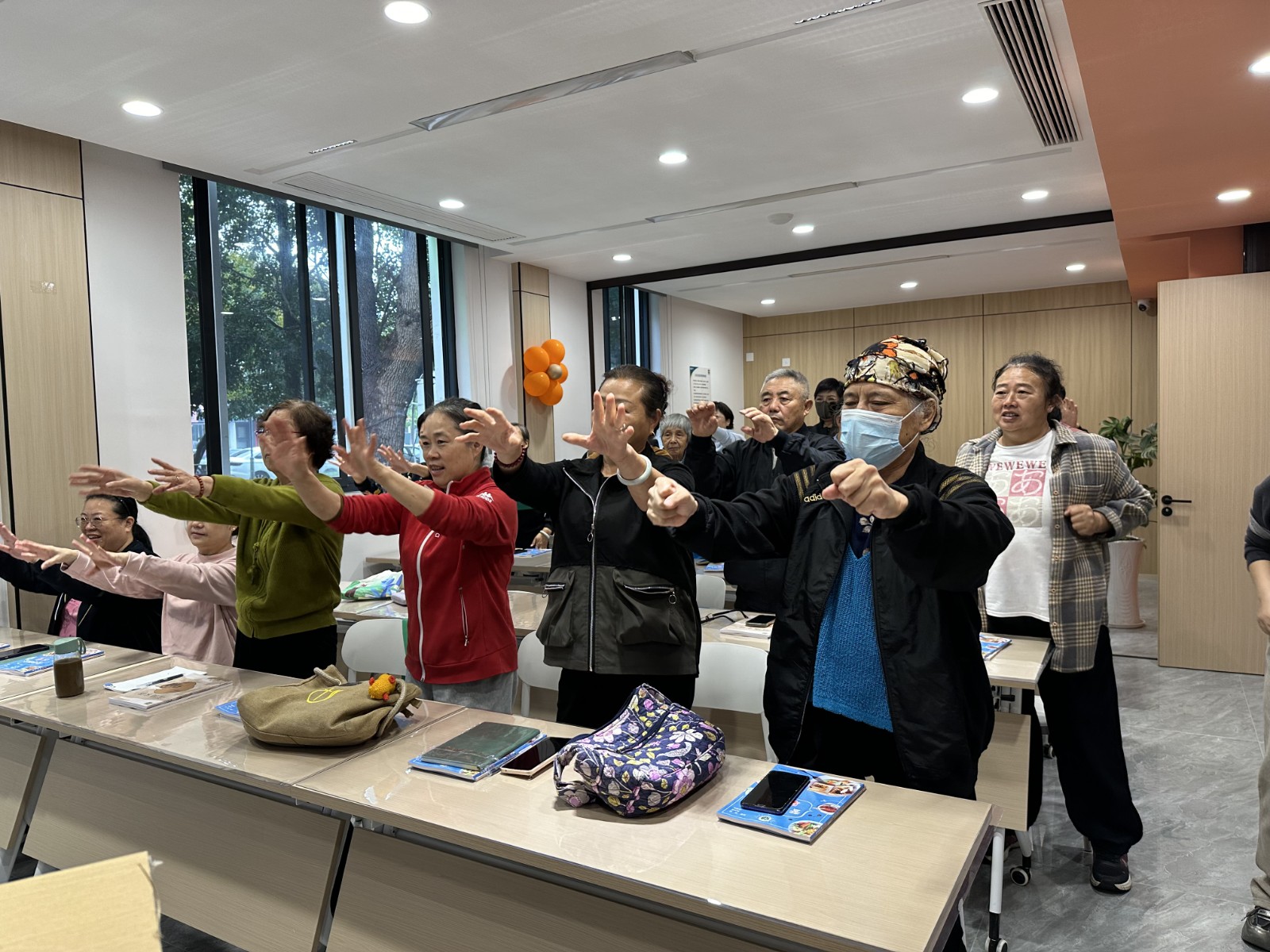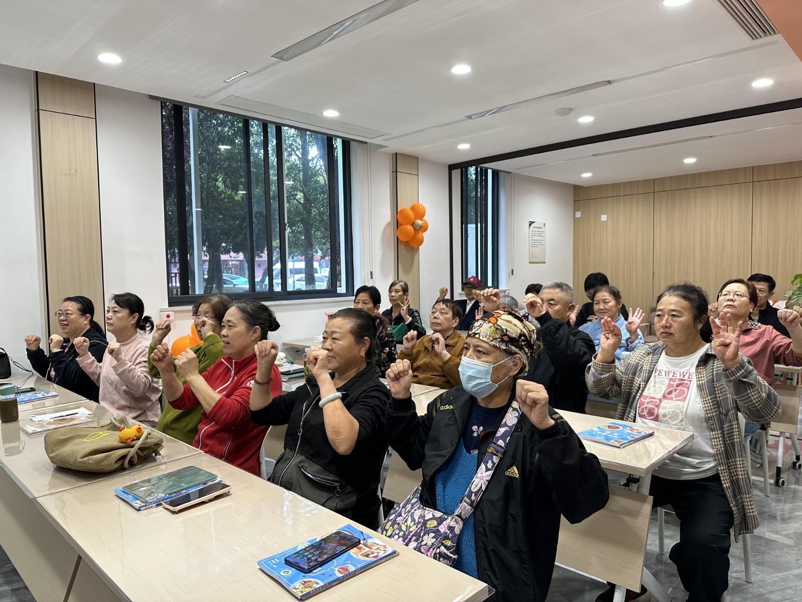 “请大家跟着我,手指依次按顺序点击掌心……” 在当日的课程现场,随着舒缓的音乐响起,社区工作人员首先带领学员们做起了手指操和健康操。手指操动作简单,主要针对手部关节进行活动,帮助老人锻炼手部灵活性,促进脑部血液循环;健康操则结合老年人身体机能特点,以伸展、扭转等轻柔动作为主,既能缓解身体僵硬,又不会给身体造成负担。“做完操感觉身体都舒展了,特别舒服!” 参与课程的丁阿姨笑着说。