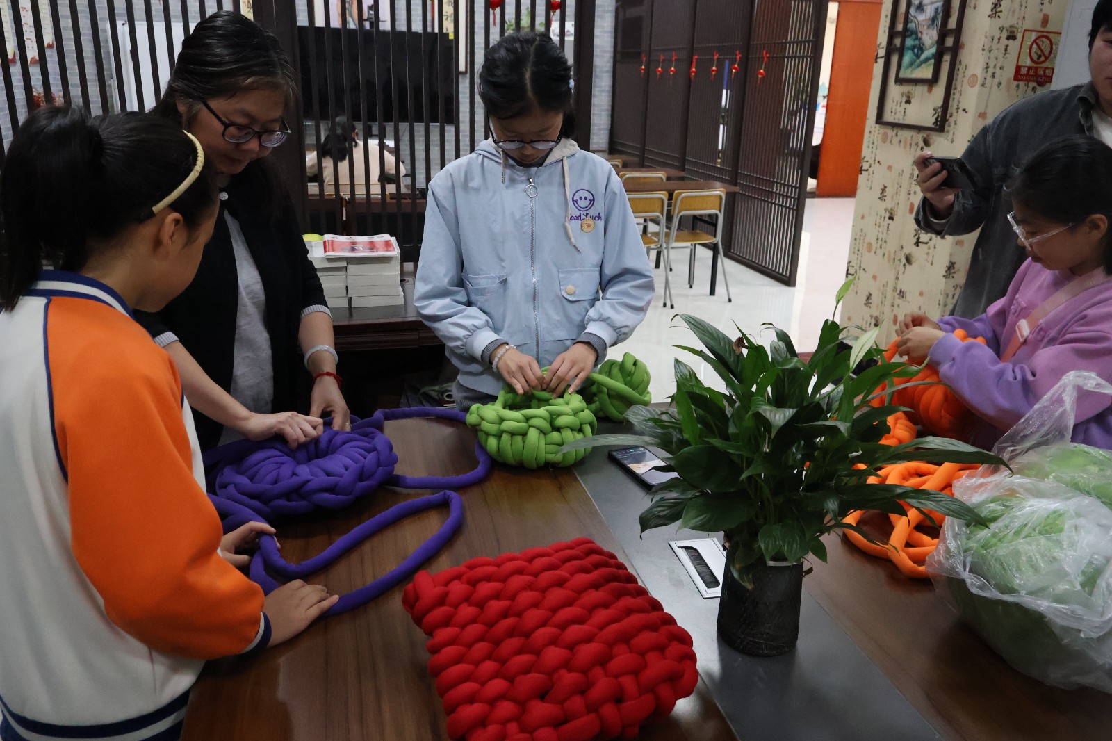 当电影的余韵未消,我们带领孩子们体验了充满创想“冰岛毛线编织”手作。色彩斑斓、质感蓬松的冰岛毛线,在孩子们指尖缠绕、穿梭。在社工与志愿者的耐心指导下,一幅幅独具创意的小挂件、一件件充满童真的靠垫逐渐成型。“我要把这个靠垫送给爸爸,爸爸工作一天辛苦啦”代欣格小朋友说道这不仅是创造力的锻炼,更是一场感受材料温度、培养耐心与专注力的美好体验。