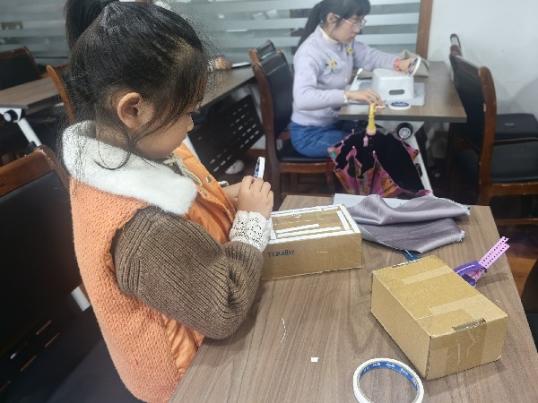 活动伊始,社区教育志愿者用生动的PPT开启了垃圾分类小课堂。“大家知道吗?我们每天产生的生活垃圾中,约30%是可回收物,这些被我们嫌弃的‘废品’,其实是放错地方的宝藏!”志愿者一边讲解,一边现场演示可回收物与其他垃圾的区分方法,还通过“垃圾投放小问答”的互动环节,让分类要点深深印在孩子们的脑海里。随后,她分享了诸多生活中的旧物改造巧思,并展示了改造后的收纳盒,孩子们的创作热情瞬间被点燃。“先根据纸盒大小裁剪布料,粘贴的时候一定要注意边角对齐,这样做出来才工整。”志愿者细致讲解制作步骤与技巧,手把手指导大家操作。孩子们专注地忙碌着:用毛线将剪好的布料与纸箱牢牢固定,细细缠绕的毛线不仅让作品更加牢固,更添了一份独特的美感。“真没想到,家里没用的纸箱和旧衣服边角料,经孩子的手一改造,就变成了这么实用的收纳盒!这活动太有意义了。”来接孩子回家的居民李女士看着女儿完成的作品,欣喜不已地说道。