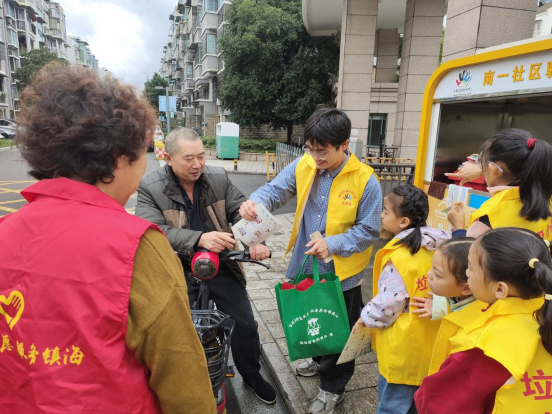 本次活动充分整合社区志愿者资源,多位叔叔阿姨作为骨干志愿者带头参与,与孩子们共同组成“垃圾分类督导小队”。孩子们借助秋假契机,化身“小小督导员”,精神饱满地投入实践。他们不仅向居民发放宣传手册、讲解分类知识,更在垃圾分类投放点开展“实地督导”,认真查看、耐心引导,用稚嫩而坚定的声音提醒居民正确分类。现场“小手”与“大手”紧密配合,形成了一道温暖的文明风景线,也让环保理念从书本走进生活,转化为实实在在的社区行动。