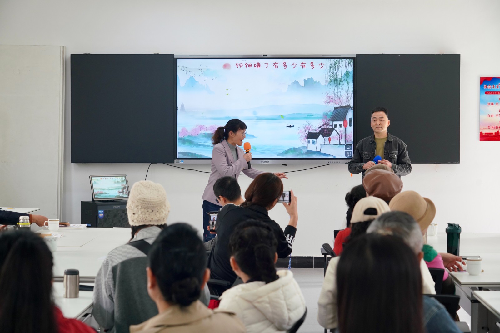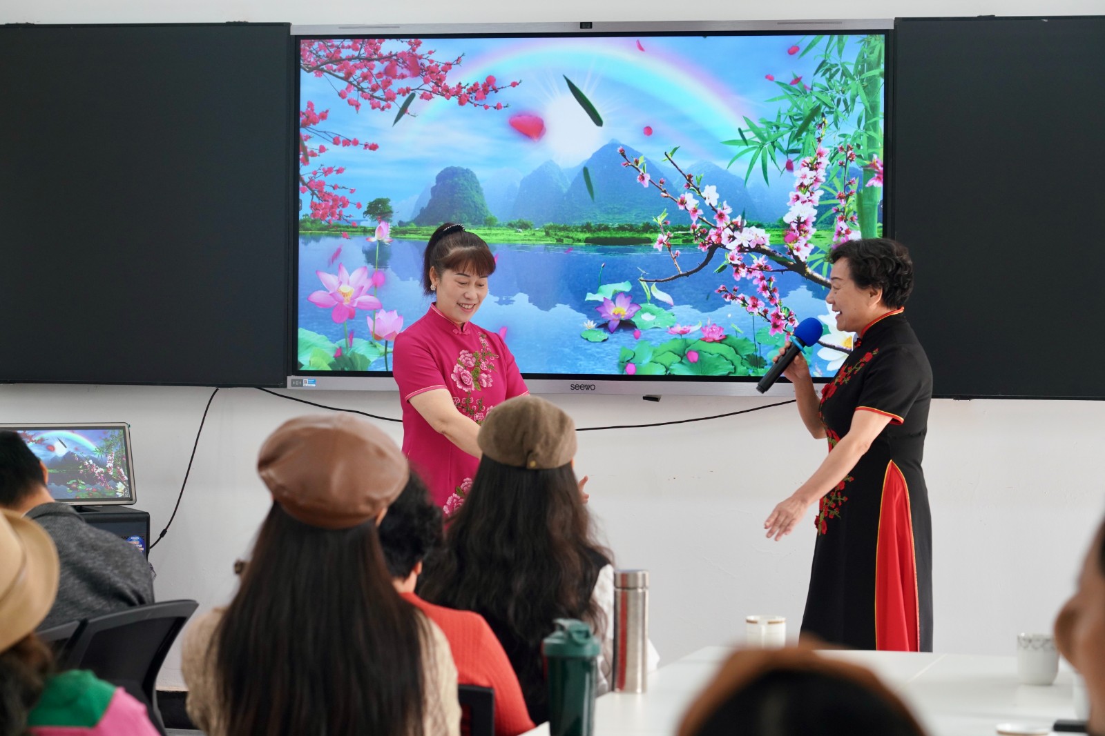 座谈会间隙,研学团观看了学院老年社团的特色节目展演。姚剧是余姚文化标签,姚剧班带来的《九斤姑娘》《阿必大》韵味悠长。越剧班演绎的《何文秀》经典动人,学员们精湛的表演赢得了考察团成员的一致好评,现场掌声不断。