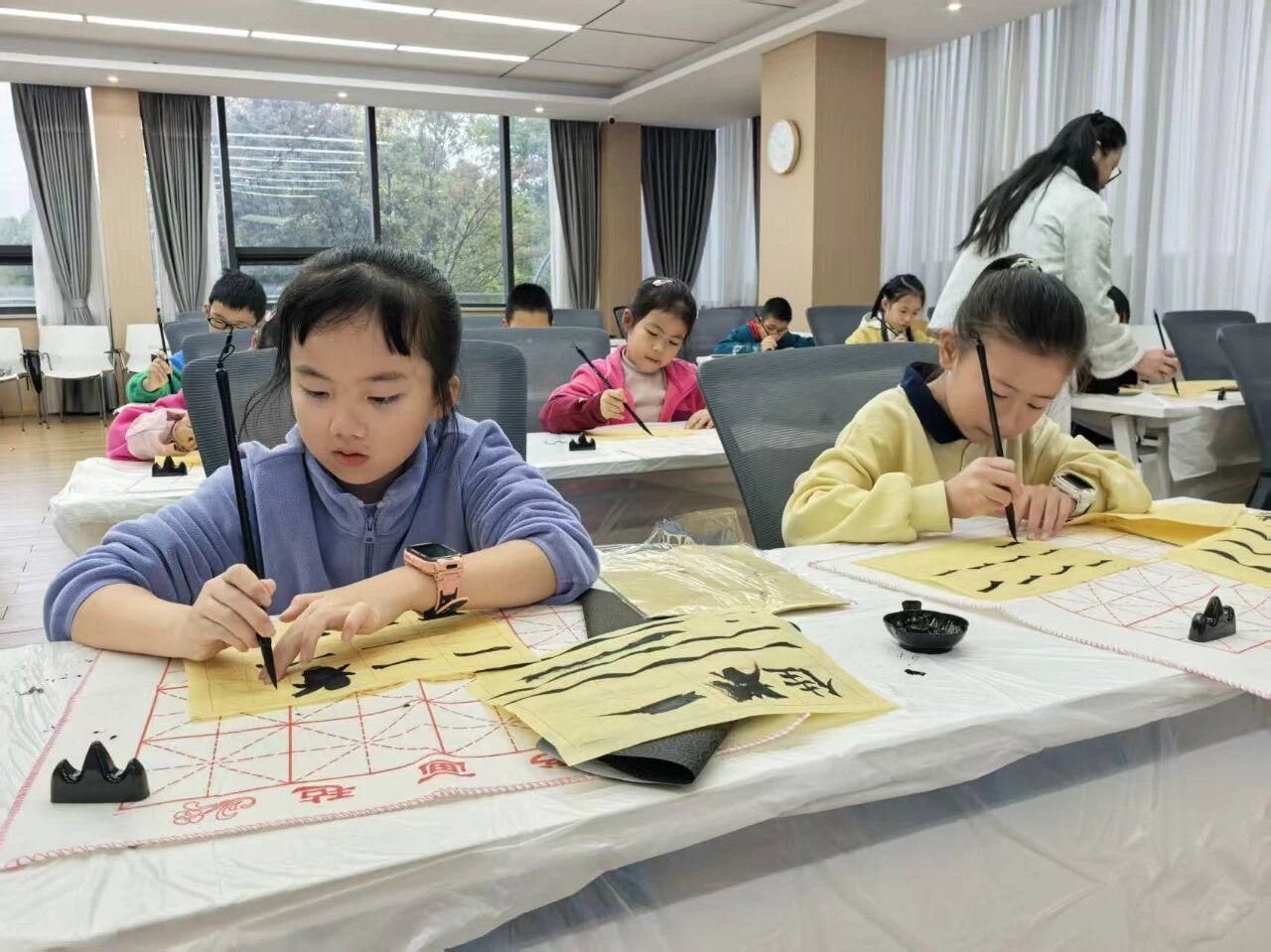11月12日上午9点,秋日营在孩子们的期待中正式开课。首日活动聚焦传统文化与环保理念。在书法体验课堂上,墨香四溢,孩子们端正坐姿,在老师的指导下从执笔、运笔学起,于一横一竖间感受汉字的神韵,初步领略了中华国粹的魅力,培养了难得的专注与静心。
