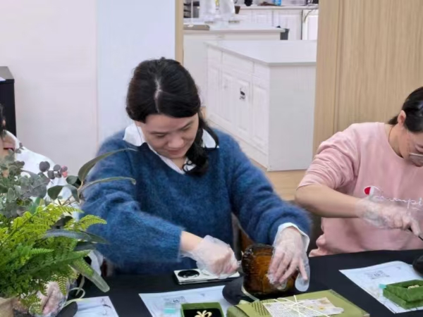 随后,活动进入更具个性化的手作胸针环节。参与者们根据自己所获珍珠的形状、大小与光泽,精心挑选配饰与底座,巧妙构思布局。或简约雅致,或复古华丽,一颗颗独立的珍珠,在大家的巧思与巧手下,被赋予了第二次生命,化身为一枚枚独一无二、闪耀个人气质的精美胸针。穿引、固定、调整……现场气氛专注而愉悦,当一件件作品最终完成时,成就感和满足感洋溢在每个人的脸上。