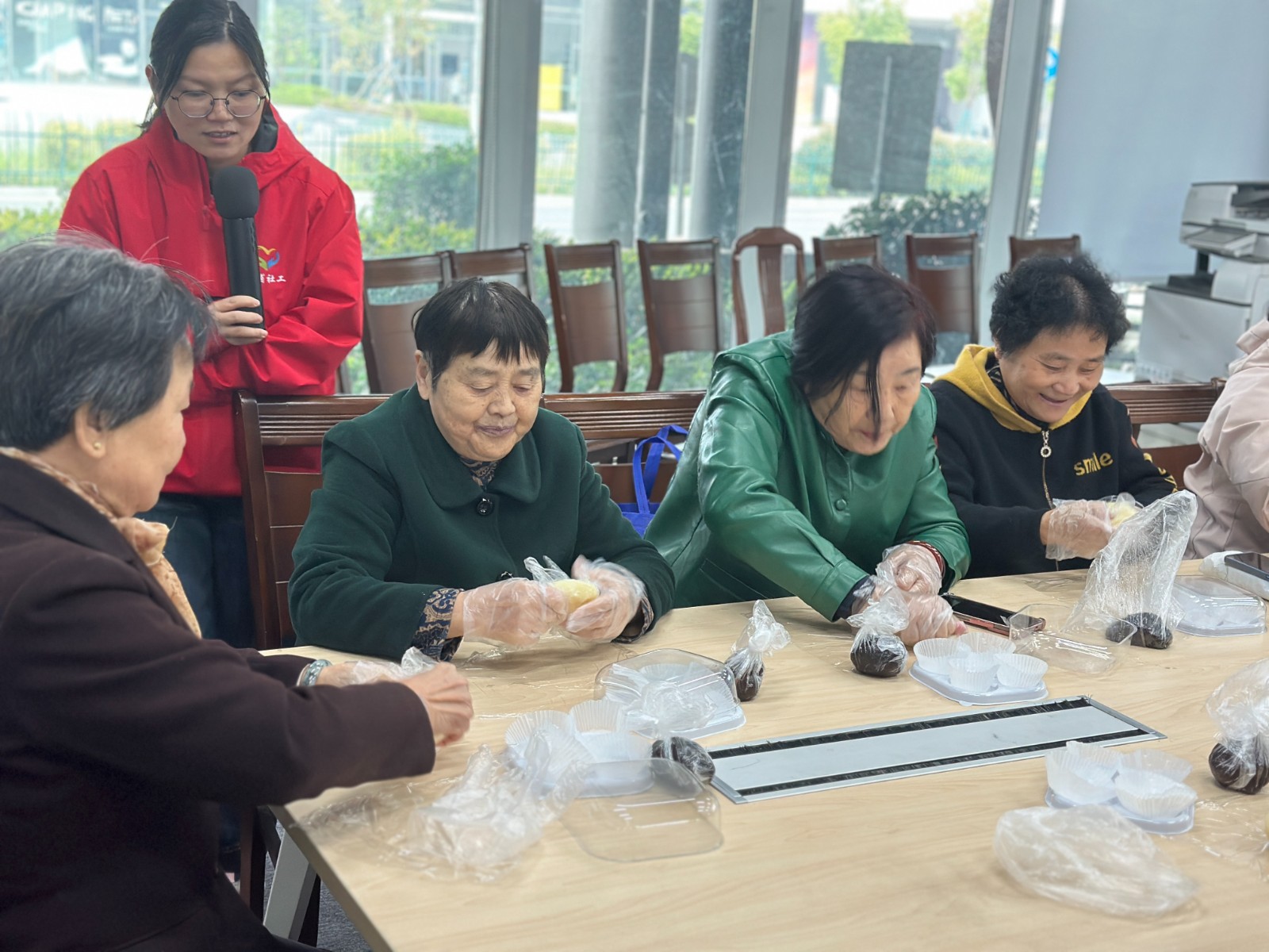 手作环节热闹有序,网格员备好糯米粉、豆沙馅、椰蓉等食材并演示制作技巧。居民们分工协作、互帮互教,揉团、包馅、滚椰蓉一气呵成,现场糯米香四溢。不久后,一个个圆润饱满的糯米糍新鲜出炉,大家分享成果与心得,暖意融融。