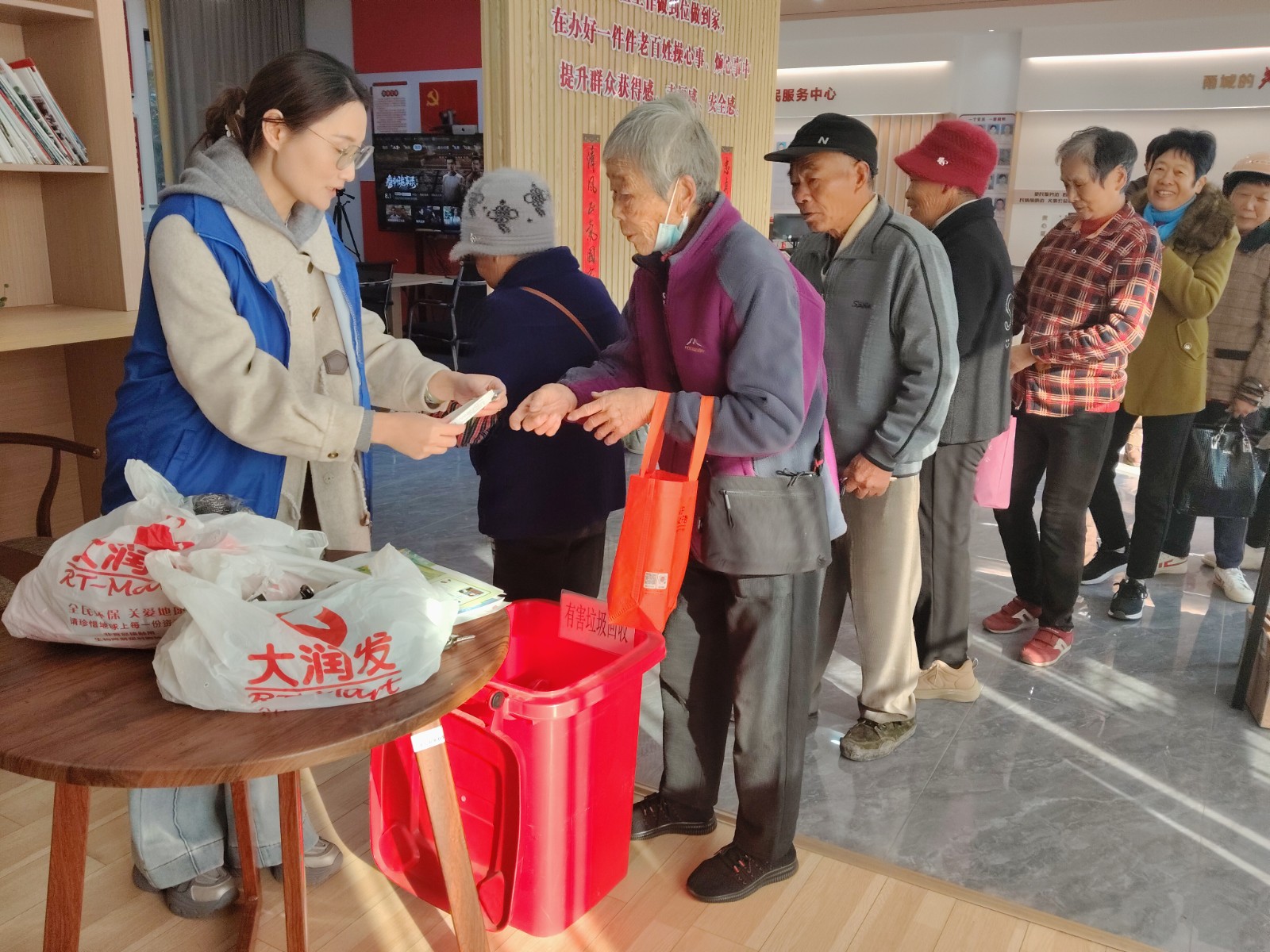 竞答结束后,更热闹的“有害垃圾兑换”环节开启。大家纷纷从随身布袋里掏出提前准备好的“宝贝”——陈阿婆拎着一塑料袋过期降压药,“家里药箱清理出不少,以前不知道咋处理,今天正好带来”;王伯伯抱着3根废灯管,“儿子装修剩下的,一直不敢随便扔,听讲座才知道是有害垃圾”。分类督导员逐一核对垃圾类型,将清洁球、保鲜袋等日用礼品递到老人们手中,还贴心叮嘱:“以后攒了有害垃圾,随时能送到社区服务台,每月21号还有集中兑换日。”