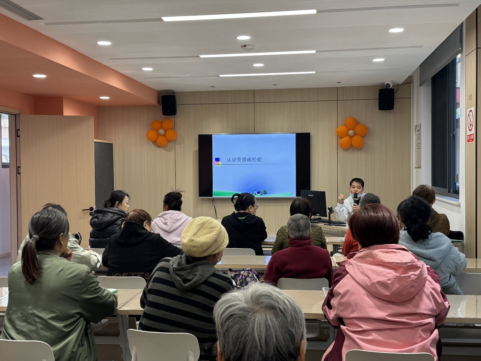 为提升社区老年人的骨骼健康意识,帮助大家科学认识骨质疏松和老年关节疼痛问题,近日,未名社区 “老友课堂” 老年电大班特别邀请宁波镇海第二医院骨科医生王毅,开展了一场以 “骨质疏松、老年关节疼痛的症状及预防” 为主题的健康讲座。