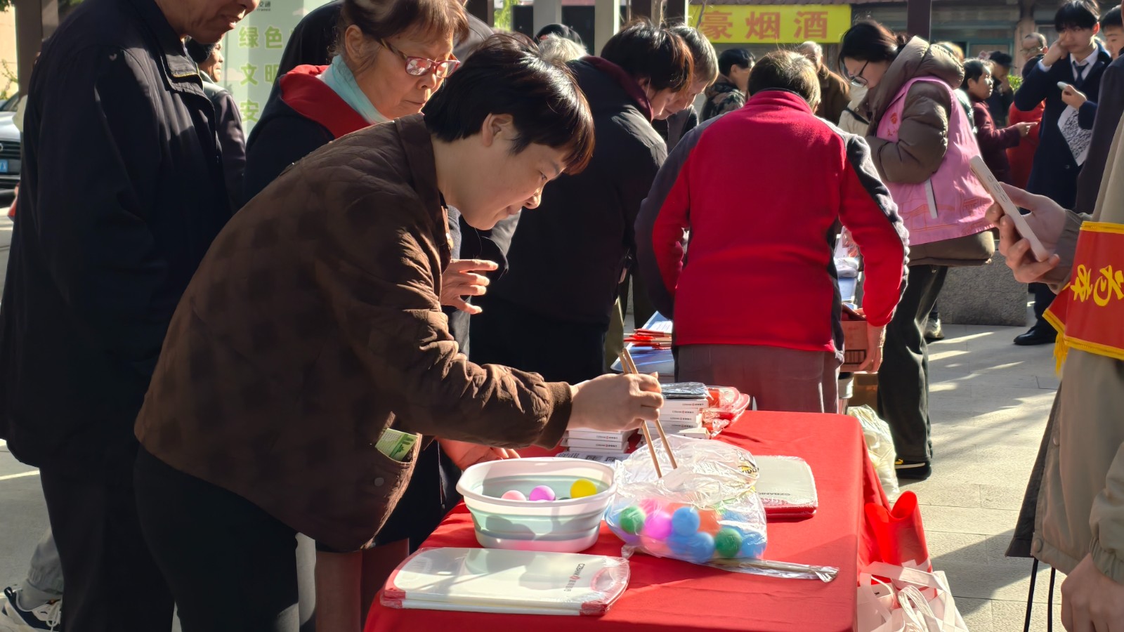 上午九点,运动会在热烈的气氛中拉开帷幕。社区工作人员和志愿者们早已将场地布置得井井有条。投壶区,参赛者凝神静气,手持箭矢,瞄准壶口,一投一掷间尽显沉稳与专注。每当有箭稳稳落入壶中,便会引来一片喝彩。掷飞镖区同样人气十足,大家轮流上场,为了命中靶心而全神贯注。拼七巧板区则是一场“头脑风暴”,五彩的板块在老人们手中翻转、拼凑,不一会儿,一个个生动的图案便跃然而出,展现了他们不减当年的智慧与创造力。夹乒乓球区更是妙趣横生,老人们用筷子灵活地夹起光滑的乒乓球,稳健地运向另一个盆中。有的老人动作娴熟,一气呵成;有的则不慎让乒乓球“逃脱”。整场运动会始终洋溢着欢乐、和谐、友好的气氛。老人们仿佛忘记了年龄,尽情地在游戏中找寻着乐趣,彼此加油鼓劲,交流比赛心得。