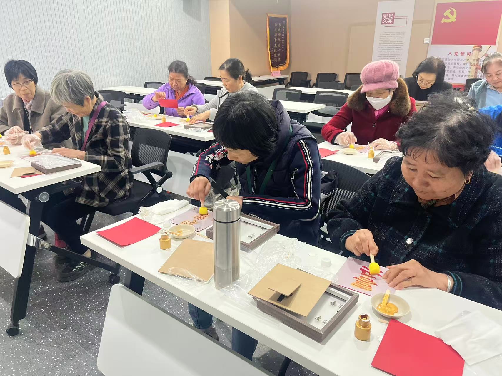 为弘扬中华优秀传统文化,丰富居民精神文化生活,近日,双桥社区精心策划并开展了一场别开生面的“指尖拓印·非遗传情”福字拓印体验活动,让居民们在亲手实践中感受非遗技艺的魅力和新春的喜庆氛围。活动伊始,老师首先为大家介绍了拓印这项古老技艺的历史渊源与文化价值,从碑石传拓到民俗应用,深入浅出的讲解瞬间点燃了居民们的兴趣。随后,活动进入了核心的动手体验环节。在专业老师的耐心指导下,居民们都跃跃欲试。大家仔细地将红色宣纸平整地覆盖在刻有精美“福”字的拓版上,然后用小巧的拓包蘸取适量金粉,小心翼翼地轻轻拍打、按压。随着指尖有节奏的起落,原本空白的纸面上,金色的“福”字轮廓逐渐清晰、饱满起来,最终呈现出金红相映、古朴大气的艺术效果。活动现场弥漫着淡淡的墨香,洋溢着成功的喜悦和欢声笑语。当一幅幅自己亲手拓印的“福”字作品完成时,大家的脸上都露出了自豪的笑容。此次活动,不仅让居民们亲身体验了非遗拓印的乐趣与智慧,更在动手协作中增进了邻里情谊,将一份份亲手制作的、充满温度的新春祝福带回家,营造了浓厚而温馨的社区文化氛围。
