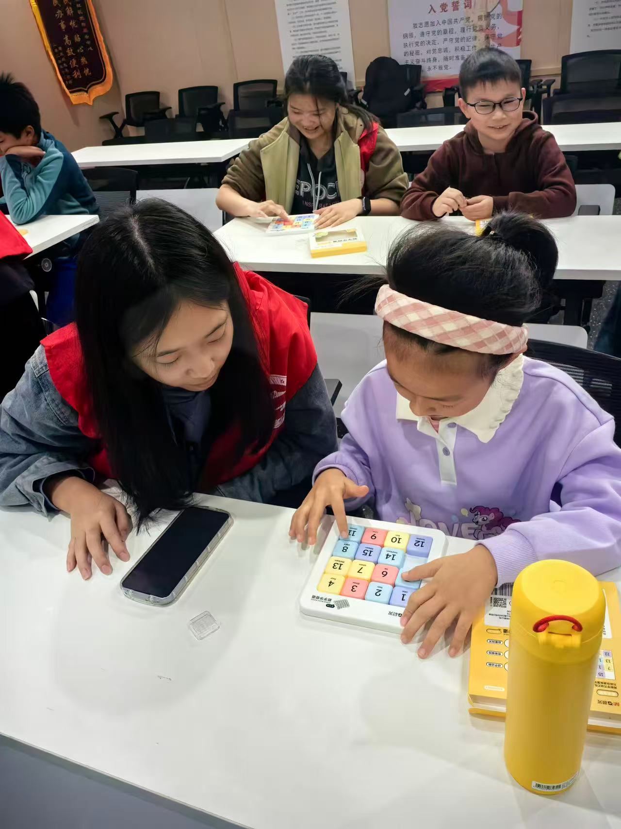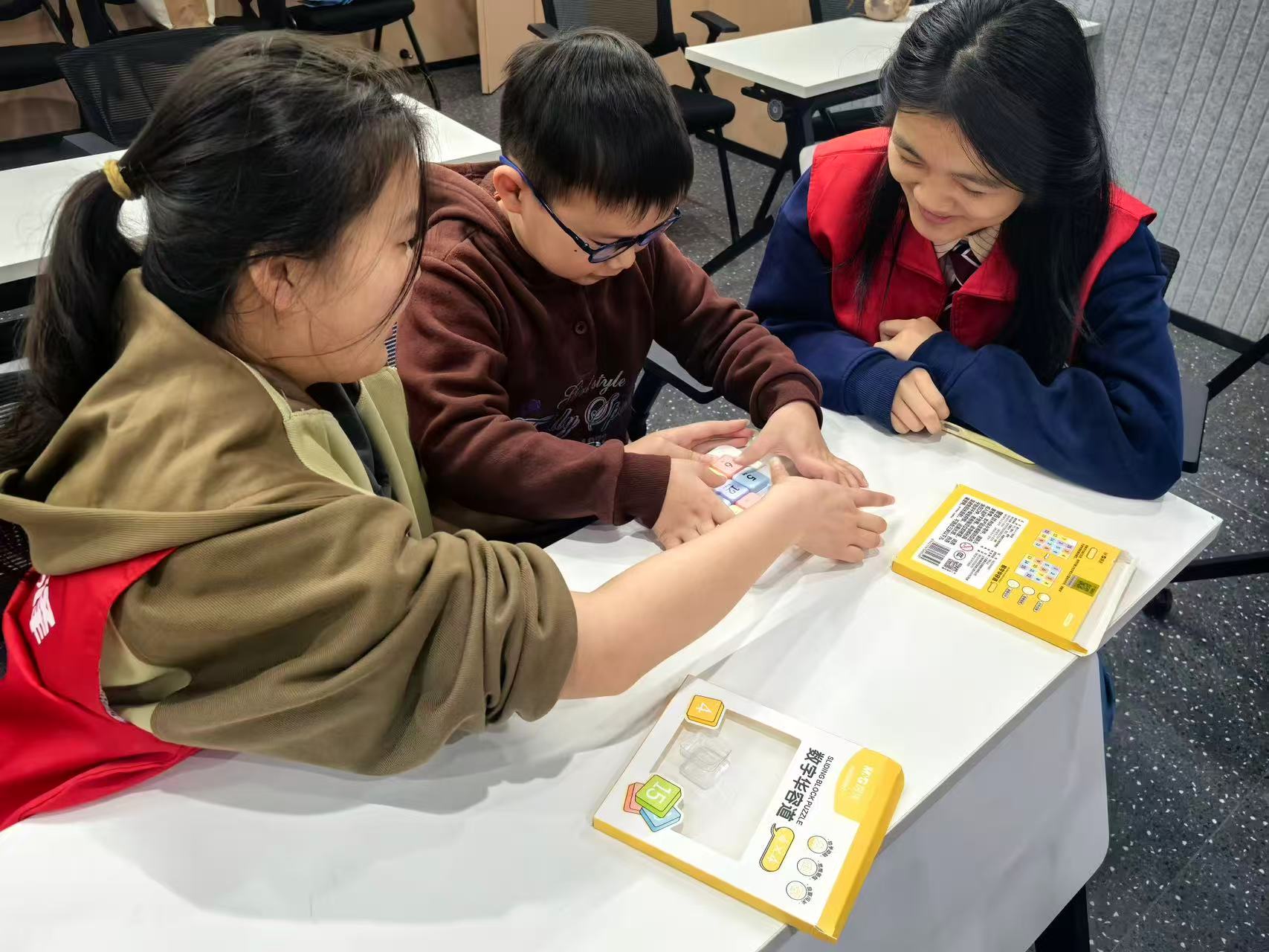 为充实社区青少年的秋假生活,打造寓教于乐的社区第二课堂,双桥社区成功举办了一场别开生面的“趣味数字闯关”数字华容道教学竞技活动。此次活动巧妙融合了数学智慧与竞技乐趣,为孩子们的假期注入了满满的思维活力。活动伊始,志愿者们首先通过生动有趣的讲解,为孩子们揭示了数字华容道这一古老益智游戏的历史与现代魅力。他们从最基础的规则和滑动技巧讲起,逐步深入到“首行优先”、“逐层求解”等核心解法策略,激发了孩子们浓厚的探索兴趣。随后的“分组练习”环节,现场呈现出“一对一”结对辅导的温馨景象。志愿者们耐心地穿梭于孩子们之间,针对每位孩子遇到的“卡点”进行个性化指导,手把手地帮助他们理解移动的逻辑与空间布局的奥秘。孩子们从最初的生疏磕绊,到逐渐掌握技巧,手指在滑块上飞舞的速度越来越快,脸上洋溢着专注与自信的神采。本次数字华容道活动,不仅有效锻炼了孩子们的逻辑思维能力、专注力和手眼协调能力,更在他们心中播下了热爱数学、勇于挑战的种子。双桥社区通过链接高校优质资源,为社区教育注入了专业活力,真正实现了“校社联动,共育未来”的良好效果。