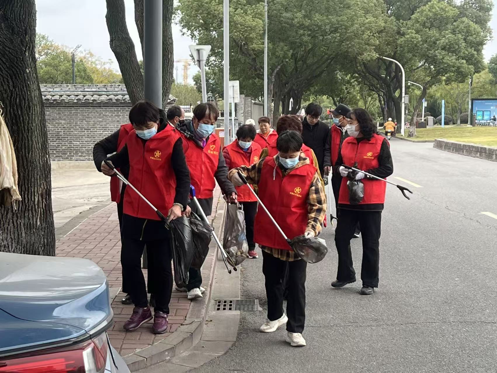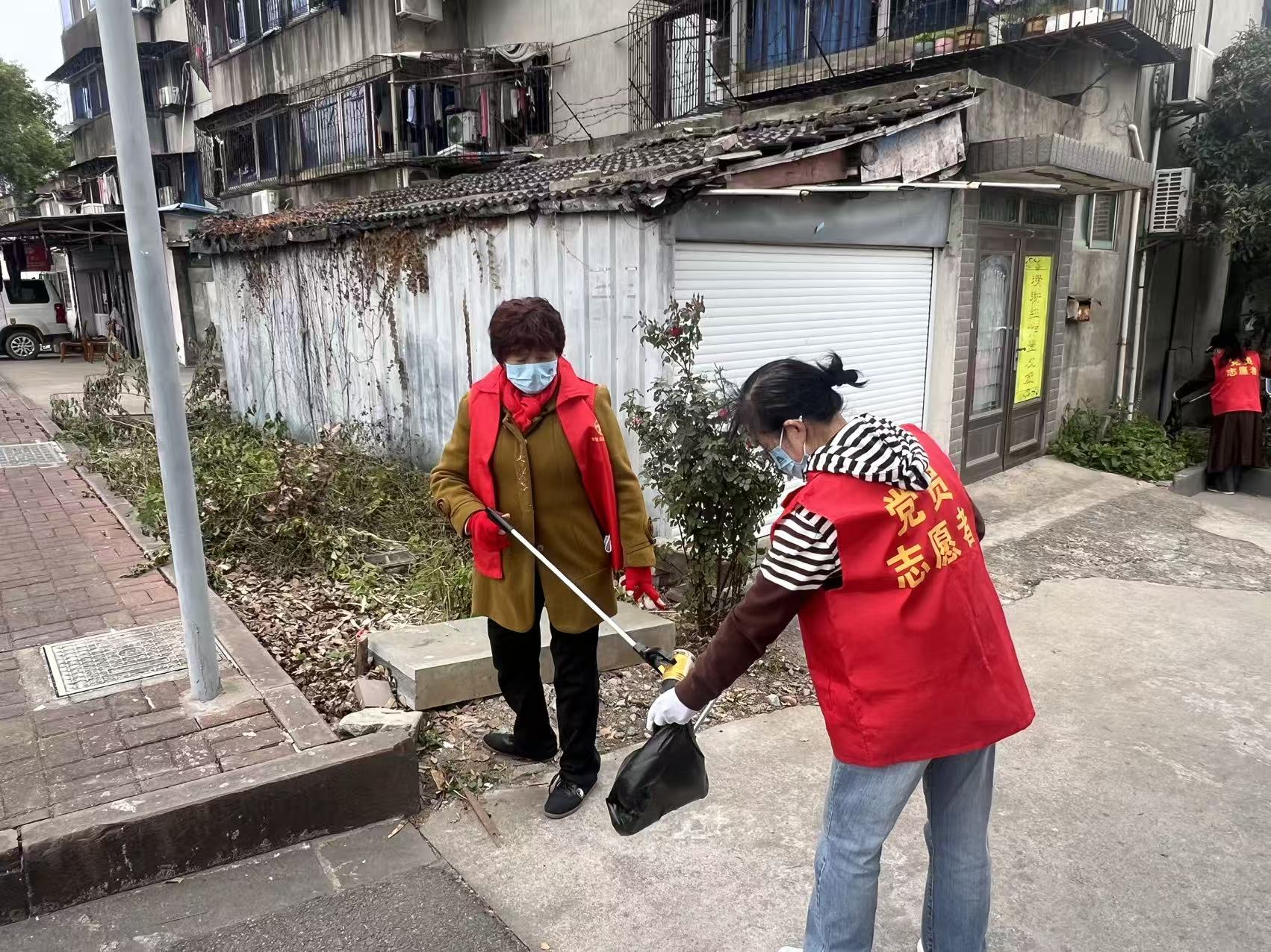 下午,志愿者们身穿统一标识的红色马甲,手持垃圾夹、垃圾袋和手套,分组沿着社区主要道路、绿化带和公共区域展开清洁行动。