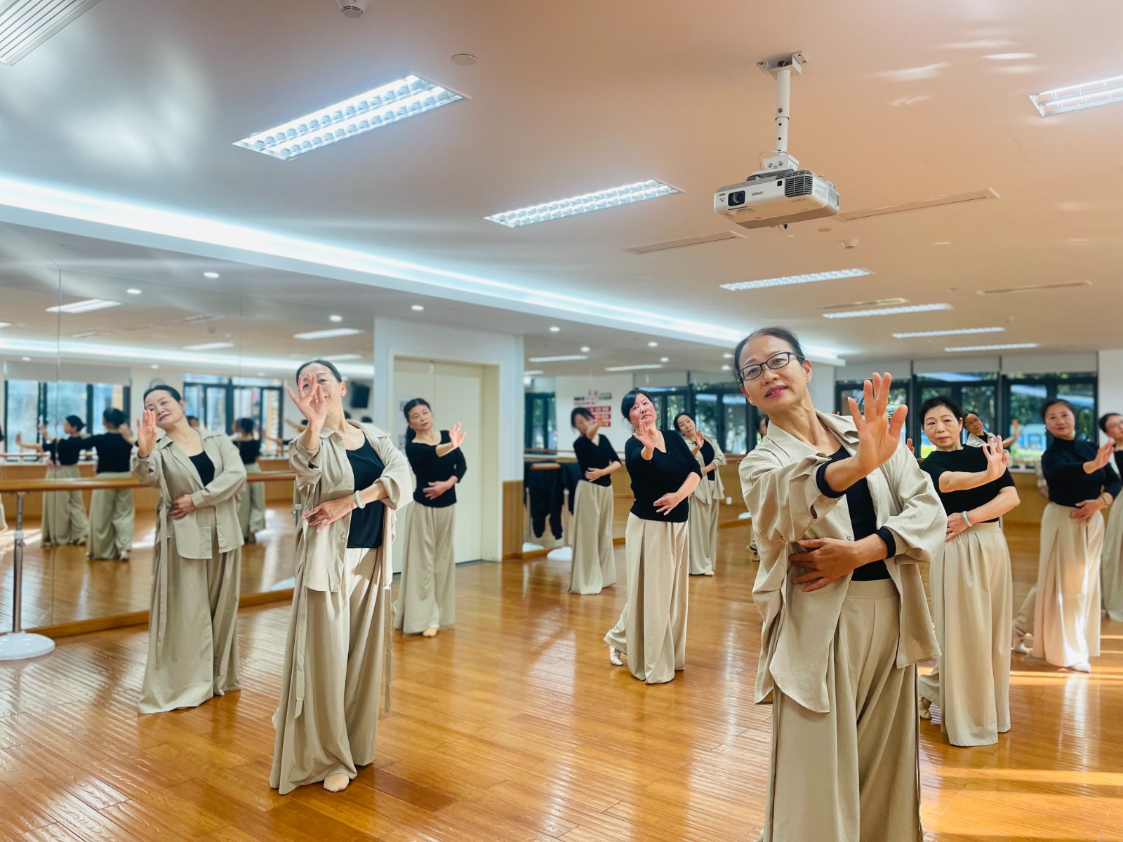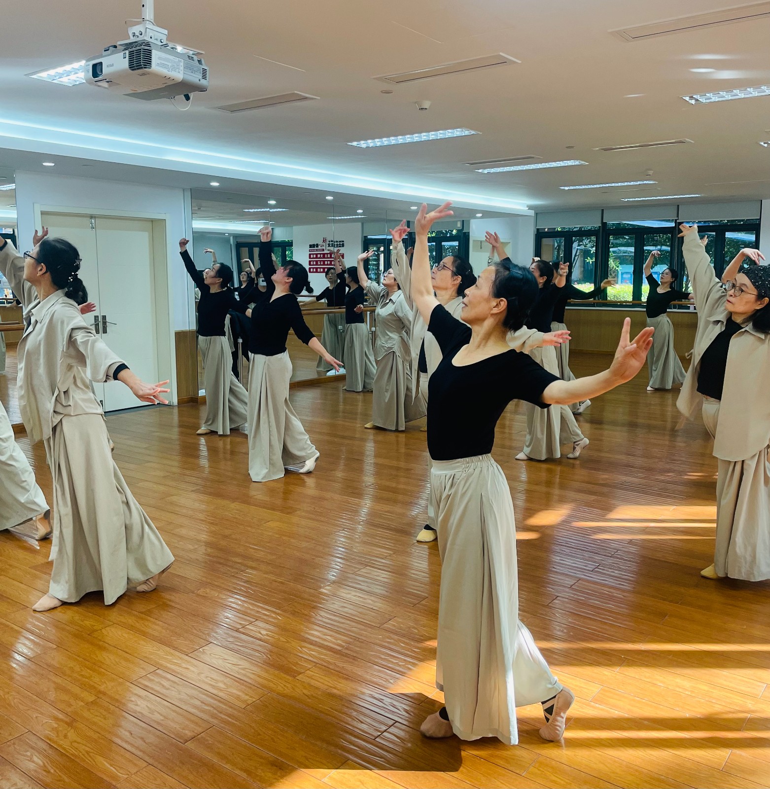 面对我们的飞跃进步,阿雷老师邀请各组轮番展示初学作品。当各组以舒展如诗的指尖、整齐却各具风采的舞姿完美呈现作品时,其他学员推门驻足,眼中盛满惊叹与赞赏。那一刻,灯光柔和,音乐流淌,仿佛时间也为我们静止。每一组展示结束,教室里都响起真诚而热烈的掌声——那不仅是对努力的认可,更是对每一个不曾放弃的自己的认可及鼓励。
