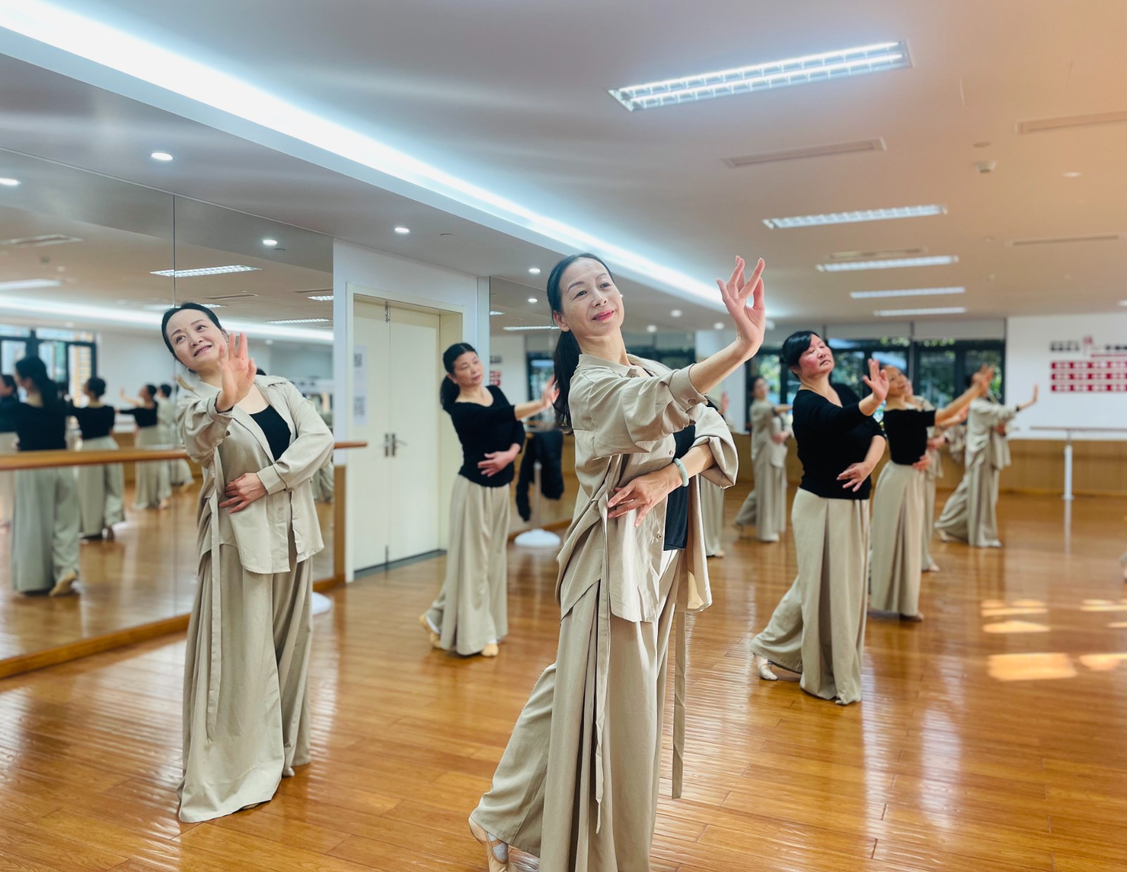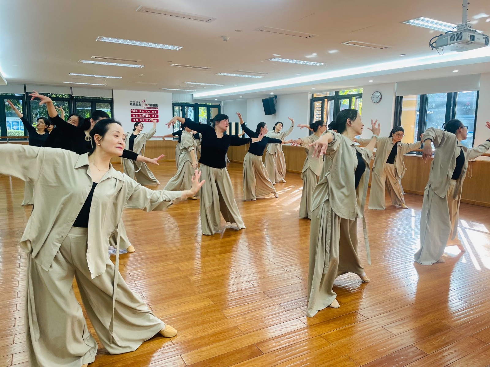 两个月前初遇时,大家笑容中仍带着拘谨与生疏,动作间还透着些许犹豫与试探;而今重聚,教室已充盈着家人般的温暖默契。每一次抬手、每一个转身,都可见彼此之间的信任与支持。这份奇妙的融合,不仅源于优质的舞蹈课程、体贴的班主任始终如一的关怀,更源于学员们如家人般的彼此奔赴、鼓励与陪伴。课间休息时,大家互相纠正动作、分享心得,笑声中弥漫着融洽与温情。