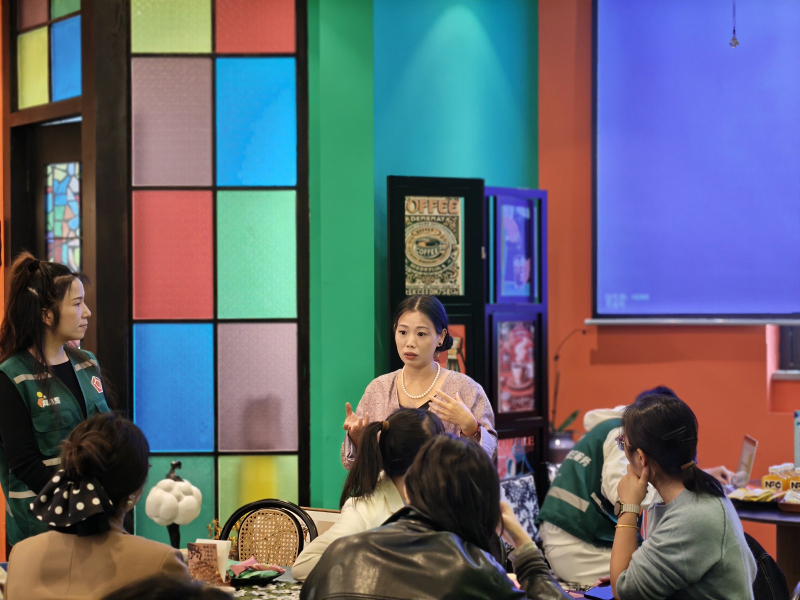 中午11点45分,活动室飘起阵阵咖啡香。我看到,平日里坐在不同办公室、穿着不同工装的同事们,此刻都围在咖啡机前。当我把牛奶和咖啡杯分发到他们手中时,那种专注而新奇的眼神,让我印象深刻。