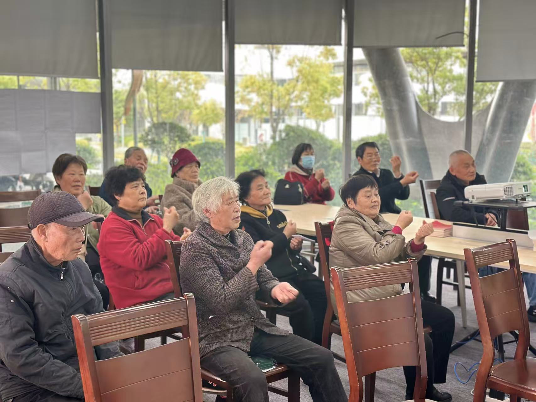 活动特邀养生指导老师,结合冬季人体生理特点,从中医养生原理出发,详解手指八段锦疏通经络、改善血液循环、缓解肩颈疲劳益处,针对中老年群体常见健康问题拆解动作养生逻辑。教学中,老师逐式示范、手把手纠正,指导居民掌握动作要领,居民们专注跟练,在舒缓音乐中舒展肢体,现场学习氛围浓厚。