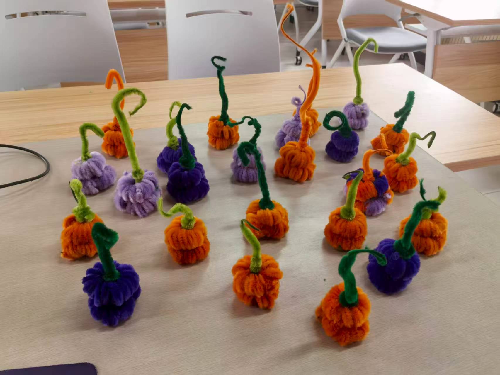 这些绒线葫芦滚在桌上,像一捧刚结出的暖。对学员们来说,这不是简单的手工——当自己捏的葫芦柄终于立住,当紫橙绒球裹成圆滚滚的模样,指尖的笨拙就变成了眼里的光。而李老师缠在葫芦上的,不只是胶带和毛根,还有把“被看见”“被接住”的温柔,让这些小小的绒线葫芦,成了能牵起自信与联结的线,把一室暖阳,编织进了日子里。