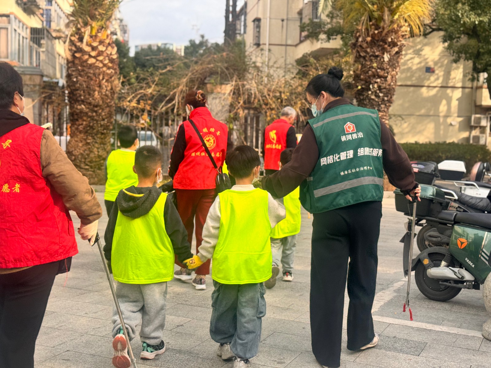 “我们今天是小小志愿者!”幼儿园的小朋友们在网格员们的带领下来到集合点,鲜艳“小志愿者”马甲被他们穿得格外亮眼。社区志愿者早早准备好垃圾夹、手套和垃圾袋,一边发放,一边向孩子们讲解如何安全捡拾垃圾、如何简单辨别可回收物。