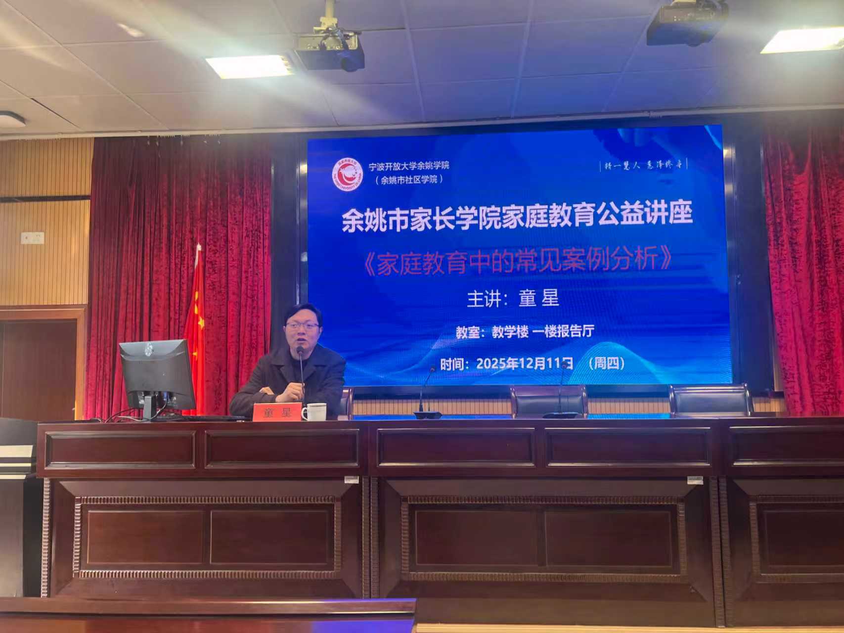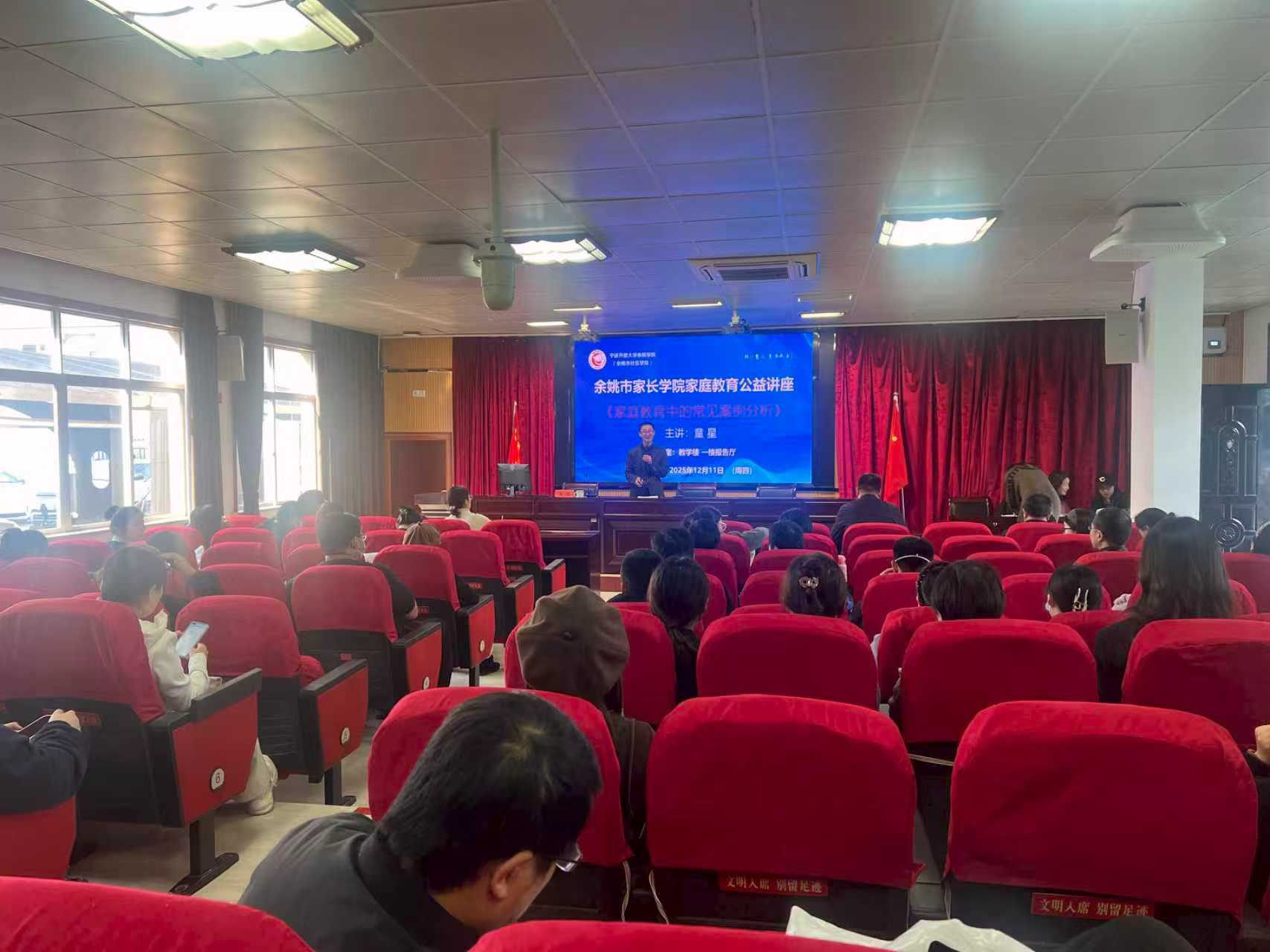 为助力家庭教育高质量发展,整合家校社协同共育资源,余姚市家长学院家庭教育公益讲座12月11日宁波开大余姚学院(市社区学院成功举办。本次讲座由宁波开大余姚学院市社区学院筹备,吸引了众多家长、教育同仁及关注家庭教育的社会各界朋友参与。