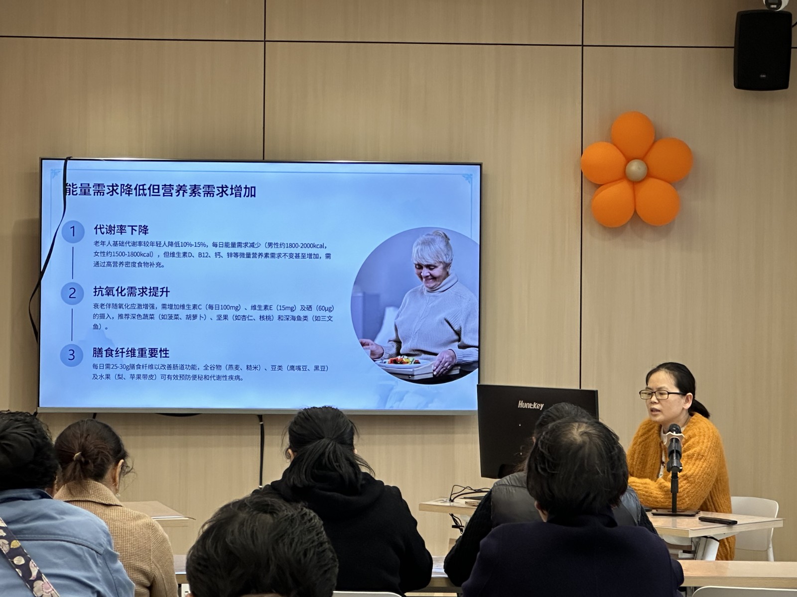 本次讲座主题为《老年人营养与膳食》,特邀炼化医院马红霞医生担任主讲。马医生从老年人身体机能衰退、慢性疾病高发的生理特点切入,用通俗直白的语言阐述了老年群体营养需求的特殊性与膳食健康的核心意义。