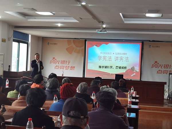 活动伊始,社区特别邀请了北仑农商行讲师王一平,开展宪法专题宣传讲座。讲师以“宪法如何守护日常生活”为切入点,系统阐述了宪法的根本地位、发展脉络与核心内容,打破了居民对宪法“抽象遥远”的固有印象。结合社区常见的养老权益、电信诈骗等实际案例,讲师深入解读了宪法中关于公民基本权利与义务的规定,清晰阐释了宪法作为“权利保障书”在民生领域的具体体现,还现场为居民答疑解惑,提供针对性法律建议。