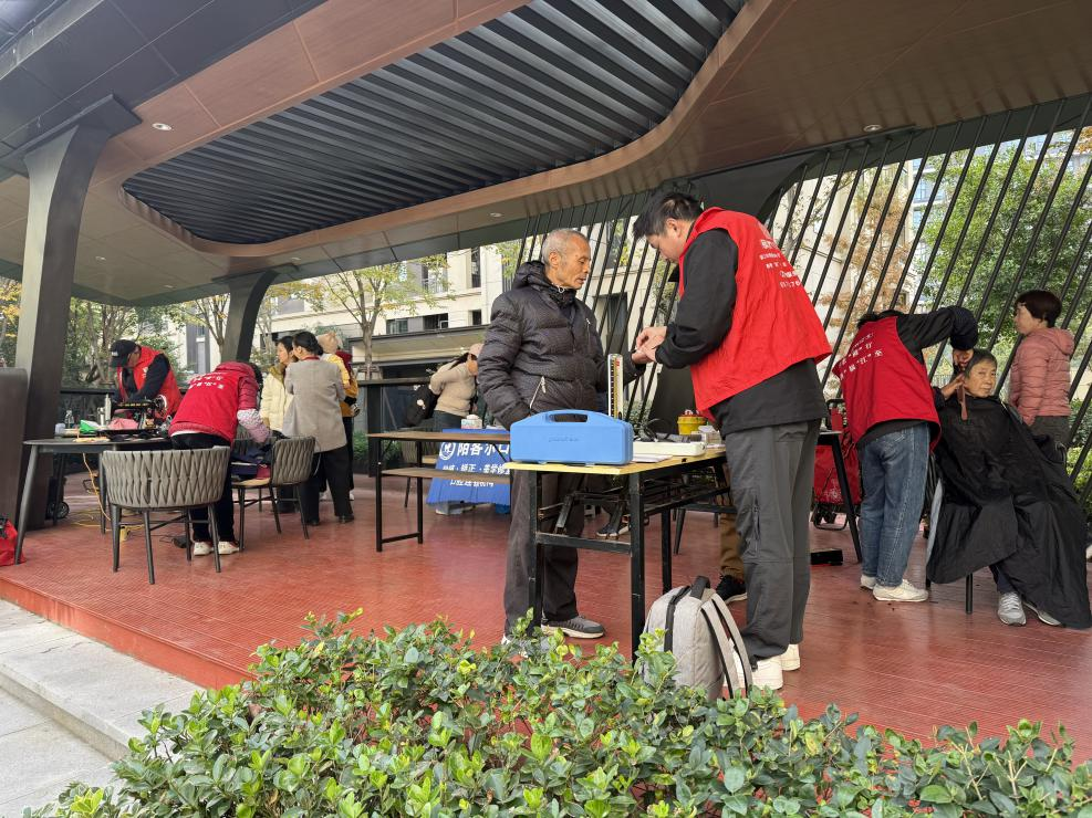 上午九时,云著花苑6幢与7幢之间的儿童游乐场旁逐渐热闹起来。“便民服务日”活动在此拉开帷幕。量血压、测血糖的服务台前,居民们有序排队,等待了解自己的身体状况。一旁的口腔健康咨询也吸引了不少关注。更显烟火气的,是理发、磨刀、缝补和修伞的摊位。老师傅娴熟地打磨着菜刀,志愿者飞针走线修补衣物,理发师精心为老人修剪着发型。这些看似微小的“关键小事”,恰恰解决了居民生活中“找不到、不方便”的实际难题。现场气氛融洽,居民们在接受服务的同时,也与邻里、志愿者话家常,其乐融融。