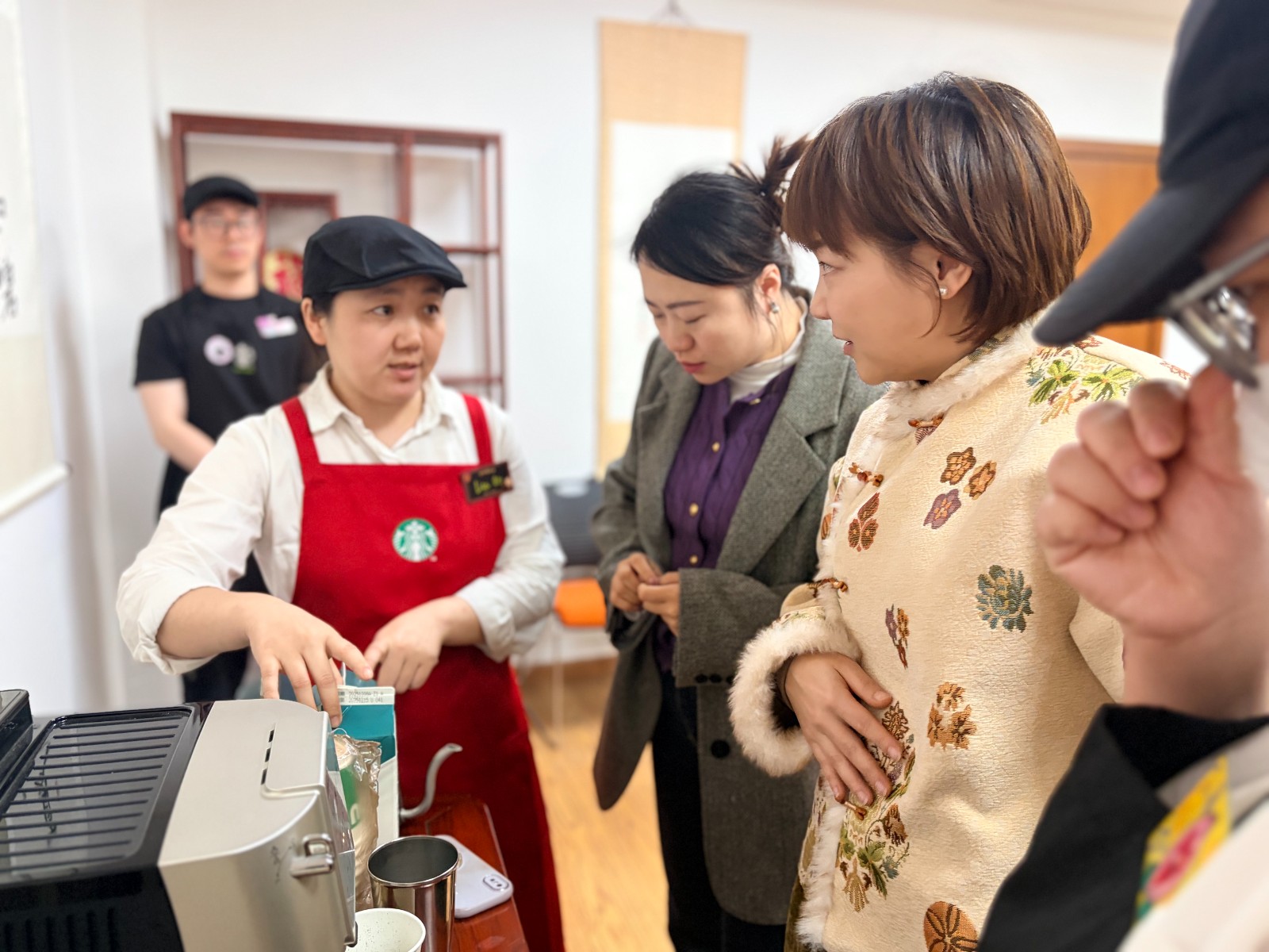 咖啡体验环节更是将活动氛围推向高潮。参与者跟着咖啡师学手冲、练拉花,用各种图形寄语美好愿景。咖啡师分享的咖啡渣堆肥、制作手工皂等绿色环保知识,也与网格内的垃圾分类、绿色社区建设工作相呼应,让绿色发展理念潜移默化融入大家的日常行动。