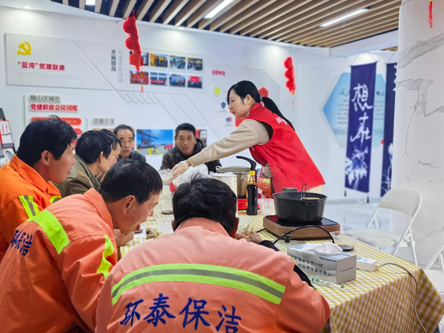 冬至将至,寒意渐浓。12月17日,梅山街道党群服务中心甬爱E家内却暖意融融、笑语盈盈,一场主题为“暖冬‘饺’好运,情系户外人”的冬至关怀活动在此温情展开。活动邀请志愿者、环卫工人、快递员等户外劳动者齐聚一堂,以饺子为媒,共话温情,让这些奔波在寒冬里的“城市守护者”提前感受到冬至的团圆暖意与社会关怀。